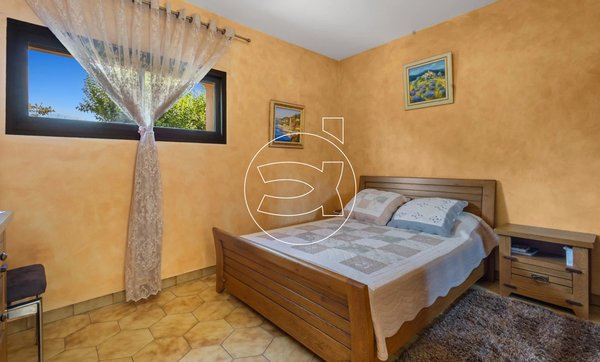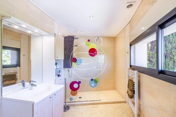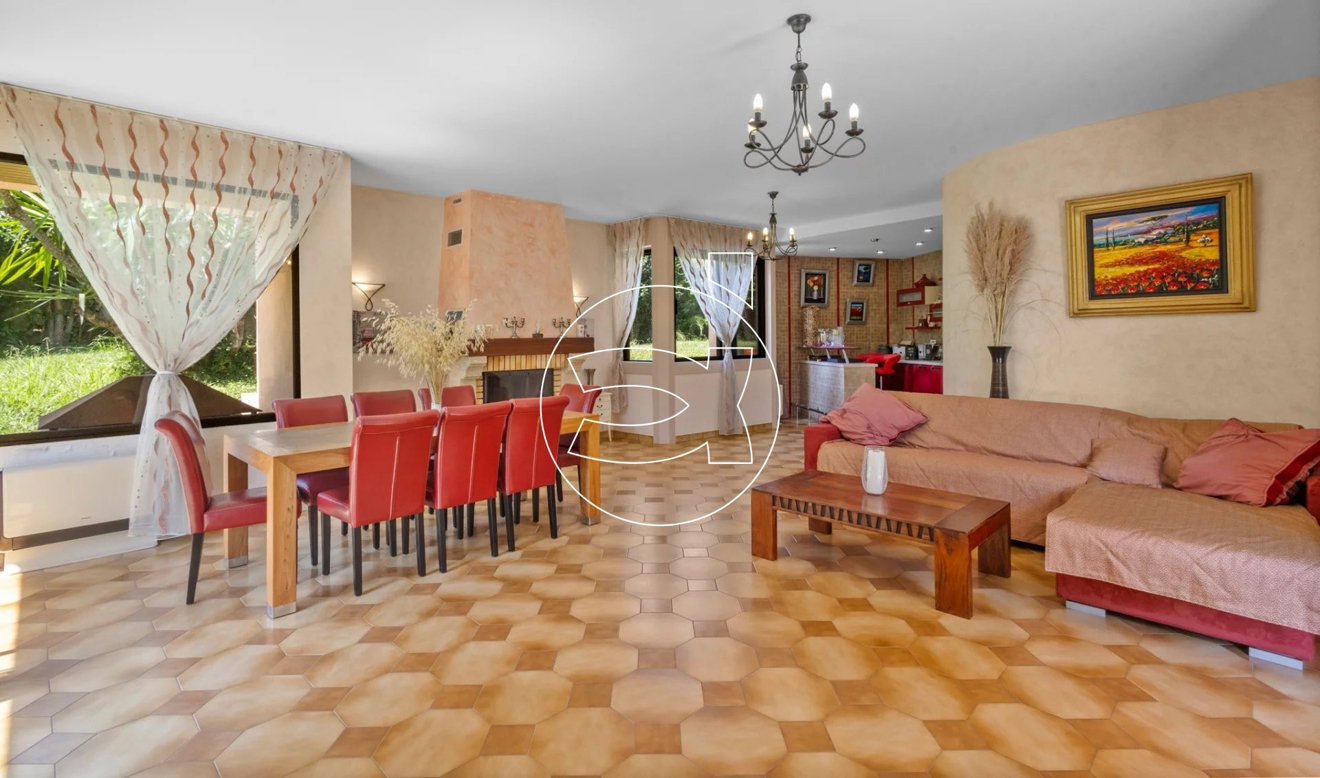 Die Immobilie umfasst 7 Zimmer, darunter 5 Schlafzimmer. Die Wohnräume sind hell und großzügig, und das Haus ist mit einer Klimaanlage, elektrischen Rollläden und Isolierverglasung ausgestattet.