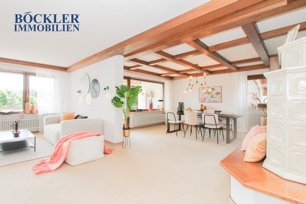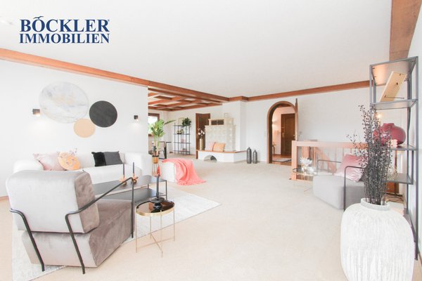 - Großzügiger Wohn- und Essbereich mit Zugang zum sonnigen Süd-Balkon mit Treppe zum Garten