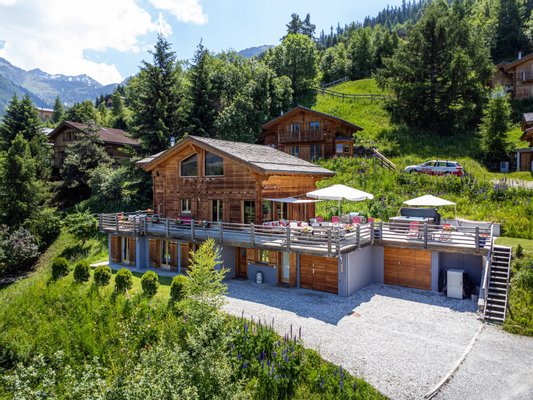 Dieses atemberaubende Chalet in La Tzoumaz bietet auf 251 m² luxuriösen Wohnkomfort. Mit seinen insgesamt 10 Zimmern, darunter 6 Schlafzimmer, ist es ideal für große Familien oder Gruppen. Die offene Gestaltung des Wohnbereichs und der moderne Kamin