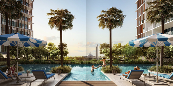 Willkommen in Ihrem neuen Zuhause in Ember Park Five! Hier erwartet Sie eine wunderschöne 1-Schlafzimmer-Wohnung mit einem atemberaubenden Blick auf die Umgebung. Der Infinity-Pool lädt zum Entspannen und Genießen ein, während die Kinder im separaten Kinderpool planschen können. Ein hochmodernes Fitnessstudio sorgt für Ihre sportlichen Bedürfnisse und die Multi-Purpose-Courts bieten die Möglichkeit, Tennis oder Basketball zu spielen.