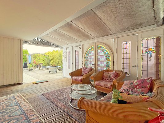 DACHGESCHOSS über Wendeltreppe vom 2. OG erreichbar mit Arbeitszimmer oder Bibliothek und einem Wintergarten sowie die umlaufende Dachterrasse, quasi die gesamte Hausfläche abbildend. Arbeitszimmer 36 qm, unbeheizter Wintergarten 16 qm anrechenbar ( 1/2 von 32 qm), 117 qm anrechenbare Dachterrasse ( ¼ von 470 qm).