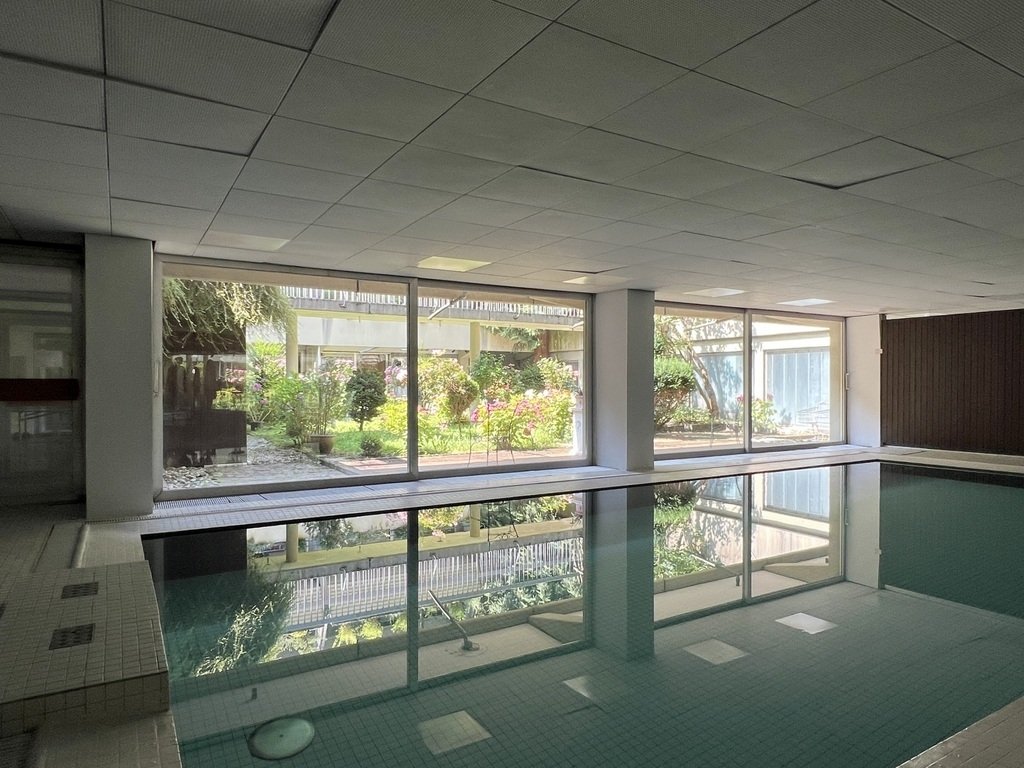 dem schönen Schwimmbad mit Blick in den Innengarten.