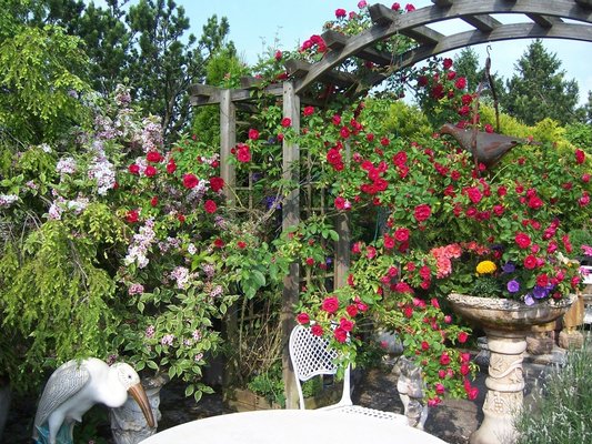 Blumen vorhanden sind. Ein Gemüsegarten liefert frische Kräuter, Salate und Gemüse.