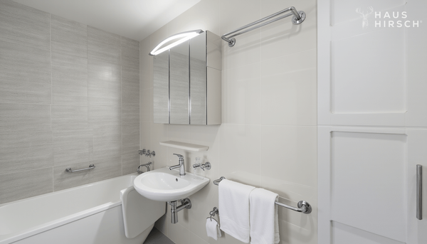Zusätzlich steht Ihnen ein weiteres Badezimmer mit Nasszelle, Toilette und Waschbecken zur Verfügung.