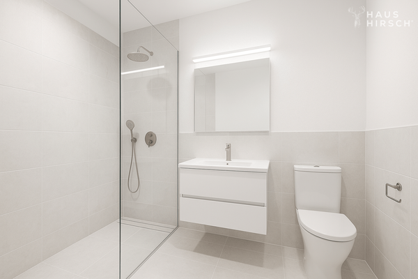 Ein optionaler Tiefgaragenstellplatz kann zusätzlich erworben werden. Die Ausstattung der Wohnung lässt keine Wünsche offen: Wählen Sie zwischen hochwertigem Vinyl oder edlen Fliesen als Bodenbeläge, die Wände werden weiß mit Malerflies tapeziert, optional können Deckenspots installiert werden. Die Bäder sind in hellen Tönen angesetzt, großformatige Fliesen bis ca. 1,60 Meter Höhe und geräumige Nasszellen runden das Angebot ab. Die modernen Badezimmer bieten entweder eine Walk-In Dusche oder eine Badewanne, eine Toilette, ein Waschbecken und Platz für eine Waschmaschine.