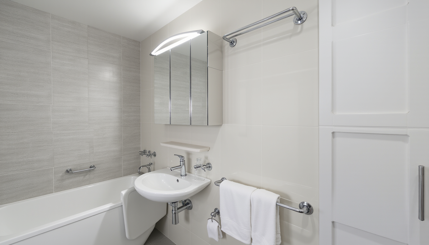 Zusätzlich steht Ihnen ein weiteres Badezimmer mit Nasszelle, Toilette und Waschbecken zur Verfügung.