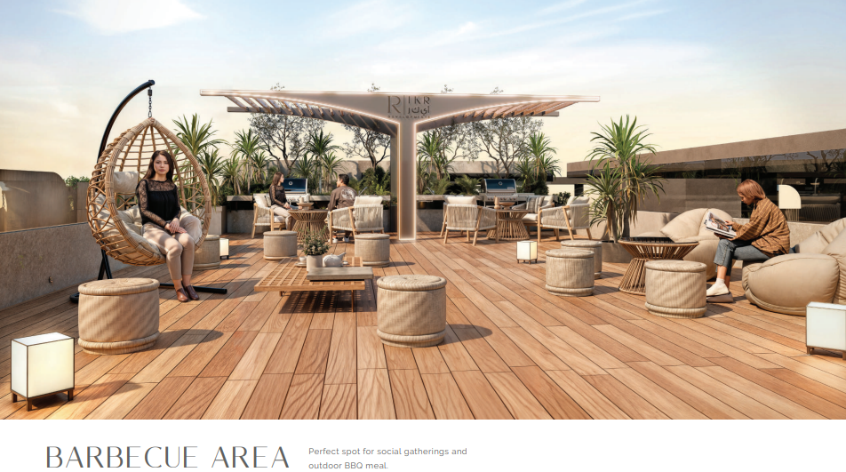 Für zusätzlichen Komfort und Luxus erwarten Sie auf dem Dach des Gebäudes ein Lounge-Bereich mit versenkter Sitzgelegenheit, ein Open-Air-Kino, ein BBQ-Bereich im Freien, ein Zen-Garten und ein vertikaler Garten. Die Gemeinschaftsannehmlichkeiten umfassen einen Mehrzwecksaal für Veranstaltungen, Einzelhandelsgeschäfte vor Ort, ausreichend Parkplätze, 24/7-Sicherheit und CCTV-Überwachung, sowie High-Speed-Aufzüge.