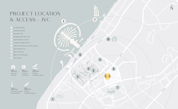 In der Freizeit können Bewohner des Jumeirah Village Circle die zahlreichen Restaurants und Einkaufsmöglichkeiten im nahegelegenen Zentrum genießen. Zudem lädt die Nähe zur Stadt Dubai mit ihren vielfältigen kulturellen und Unterhaltungsangeboten zum Entdecken ein.