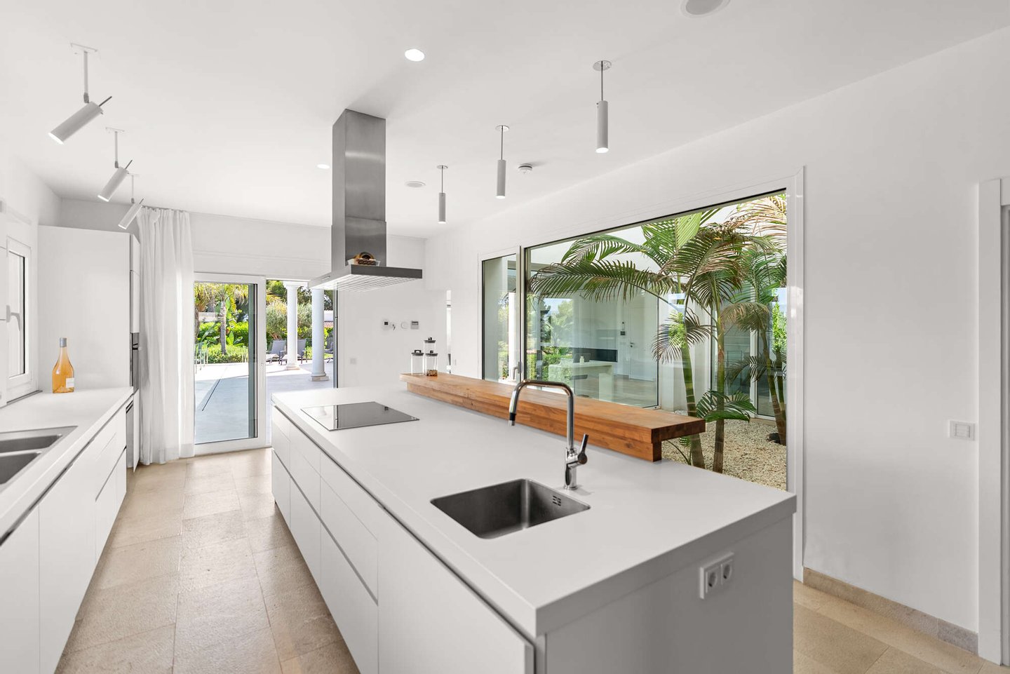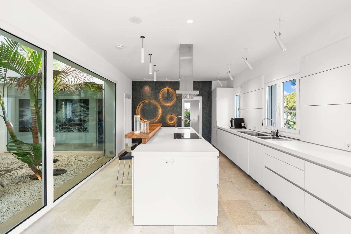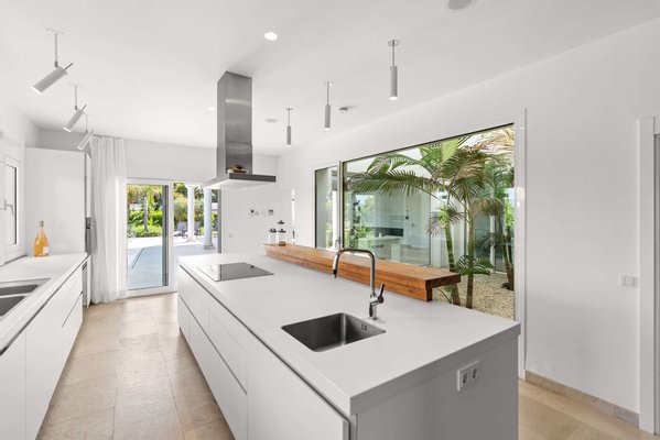 Die Villa überzeugt mit einem klaren, modernen Designkonzept und lichtdurchfluteten Räumen, die nahtlos in die mediterrane Umgebung eingebettet sind. Im Erdgeschoss erwartet Sie ein großzügiger, offener Wohn- und Essbereich, der sich durch elegante Großzügigkeit und fließende Übergänge zur Terrasse auszeichnet. Die hochwertige, vorinstallierte Küche lässt sich individuell nach persönlichen Vorstellungen gestalten.