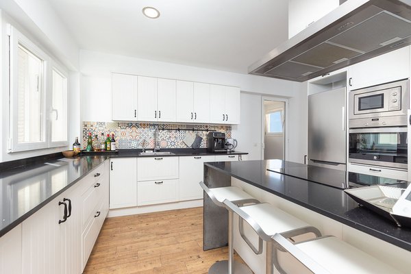 Die im Jahr 2022 vollständig modernisierte Wohnung erstreckt sich über ca. 250 m² Grundfläche und bietet mit einer rund 90 m² großen Terrasse ideale Voraussetzungen für entspanntes Wohnen im Freien. Von hier aus genießt man einen eindrucksvollen Panoramablick auf das Meer, den Hafen und die umliegenden Berge.