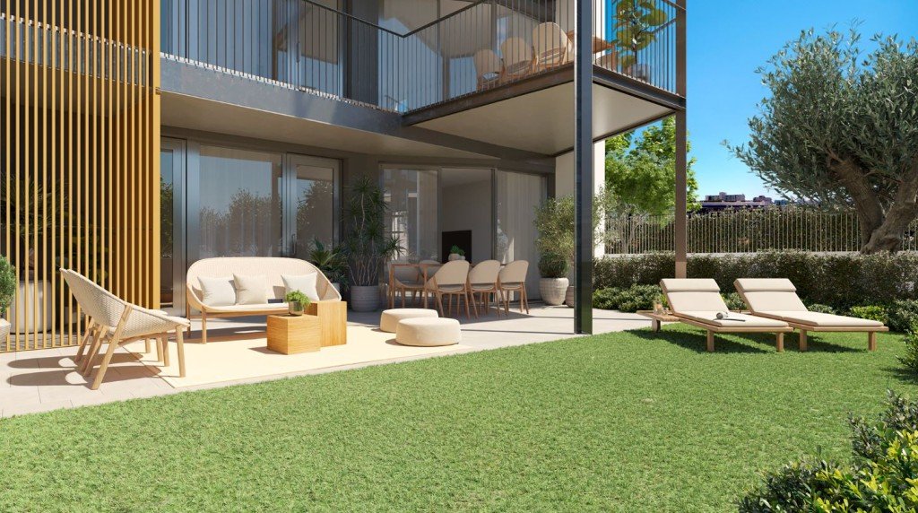 Alle Wohnungen verfügen alle über einen großzügigen Wohn-Essbereich, eine Küche, 1 bis 3 Schlafzimmer, 1 bis 2 Badezimmer und eine große Terrasse (mind. 14 m²) oder einen kleinen Garten (je nach Wohnungstyp). Die mediterran gestalteten Außenflächen bieten verschiedene Freibereiche und einen Gemeinschaftspool, der harmonisch in die begrünten Anlagen integriert ist.