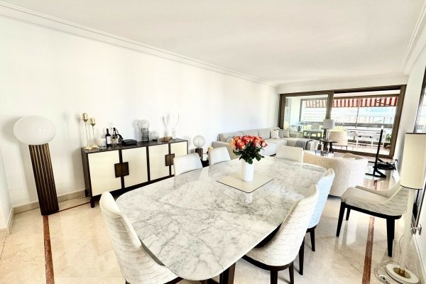 Diese schöne Wohnung befindet sich in einer sehr begehrten Luxus- und prestigeträchtigen Residenz am Goldenen Platz "Carré d'Or". Es verfügt über viel Tageslicht und einen angenehmen Blick auf die Gärten und das Fürstentum. Die geräumige Wohnung