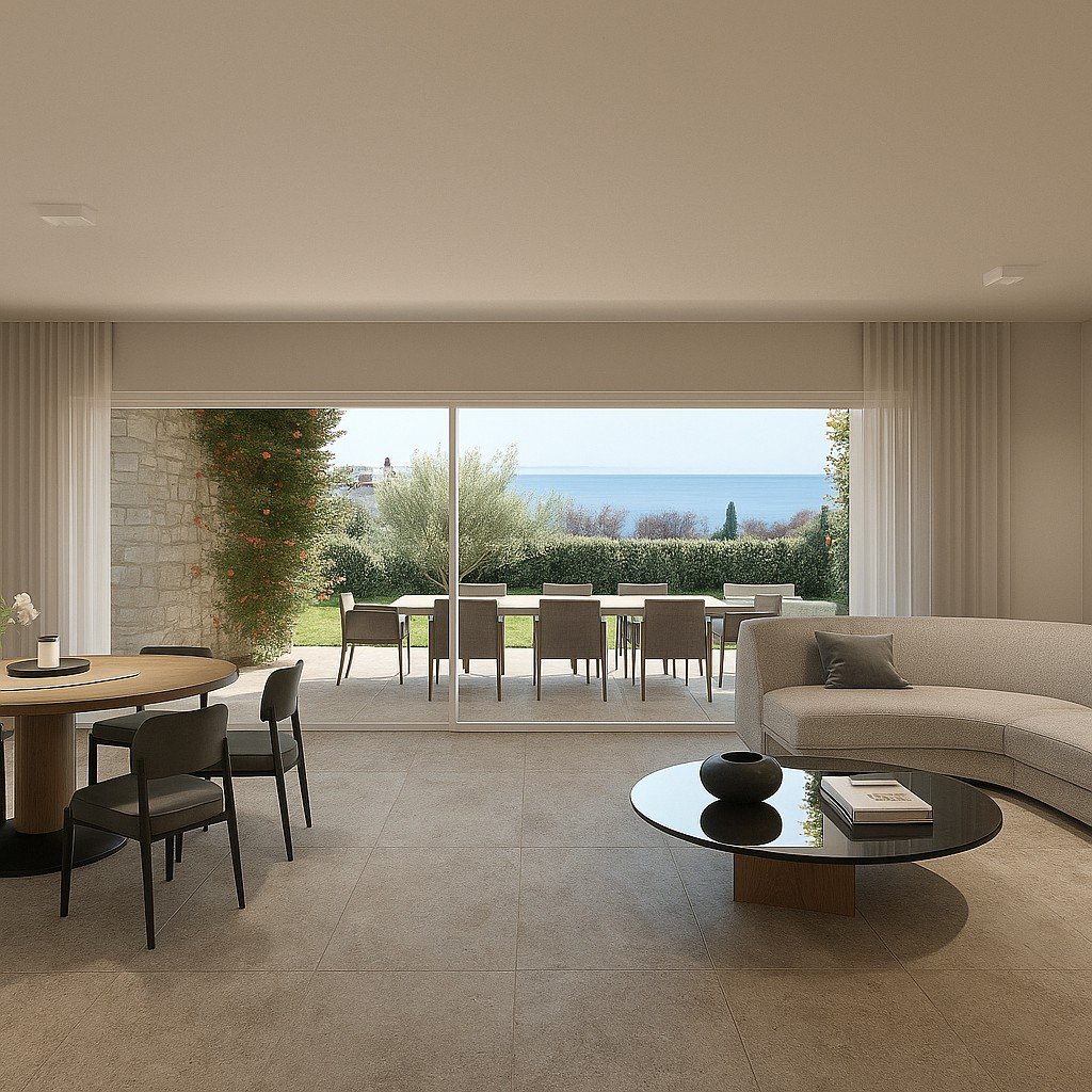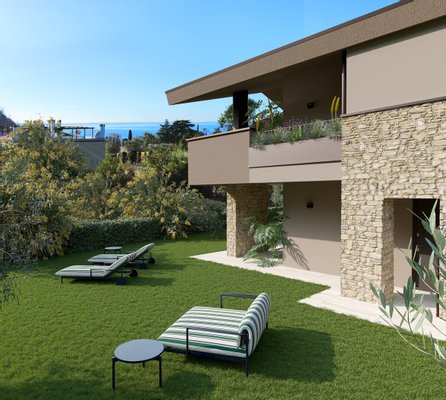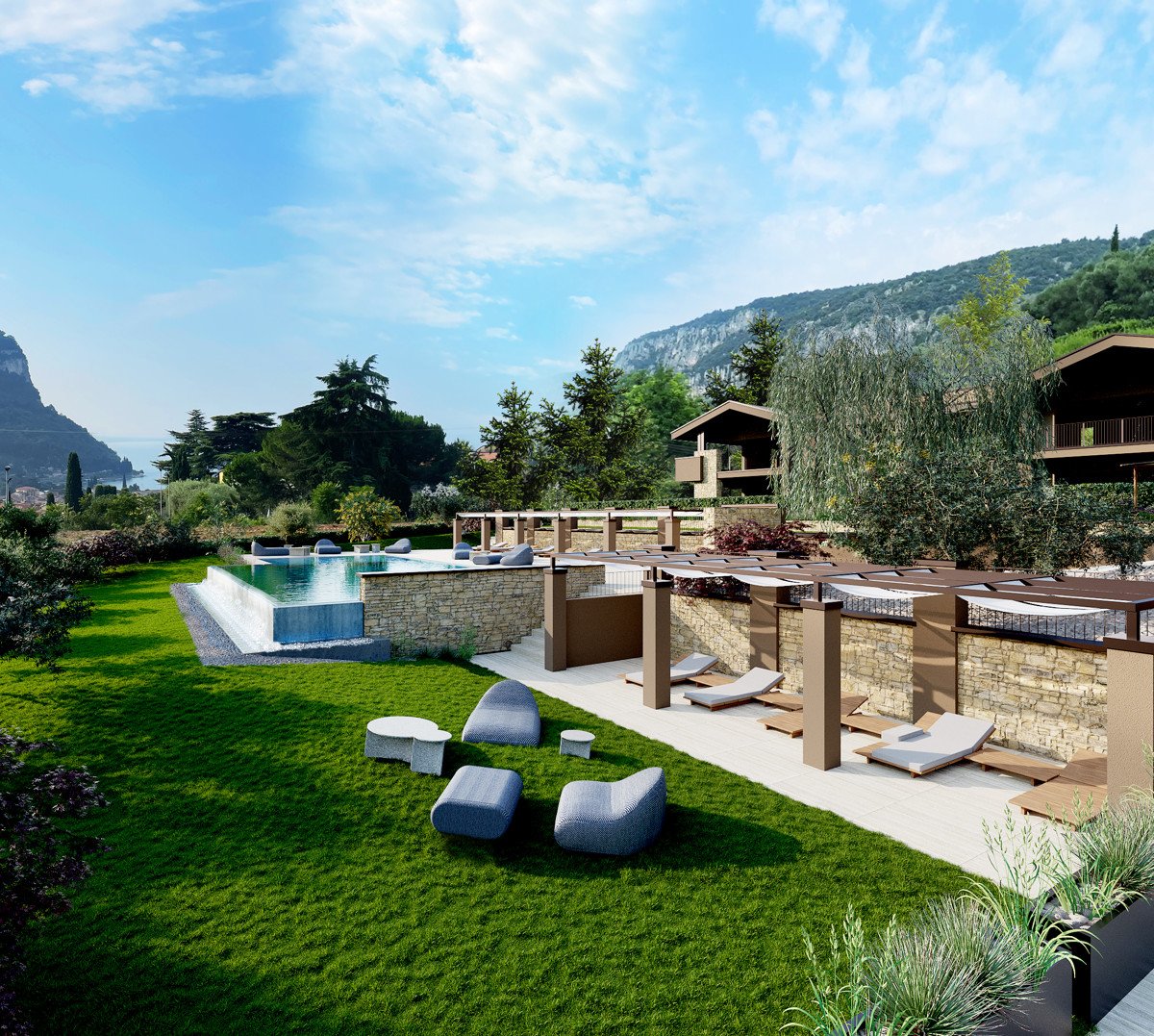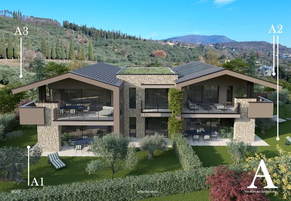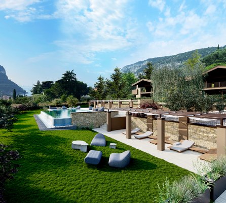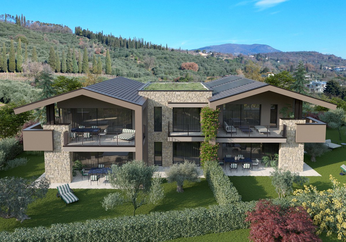 Die großzügigen Außenbereiche schaffen private Rückzugsorte und laden zum Entspannen ein: Erdgeschosswohnungen bieten liebevoll gestaltete Privatgärten, ideal für gesellige Stunden auf der Terrasse oder stille Momente im Grünen. Die Wohnungen in den oberen Etagen verfügen über großzügige, überdachte Veranden bzw. Balkone – der perfekte Ort, um bei einem Glas Wein den Blick über die herrliche Landschaft schweifen zu lassen. Einige Wohnungen bieten einen faszinierenden Blick auf den Gardasee, andere verzaubern mit einer idyllischen Aussicht auf die umliegenden Grünflächen und Berge.
