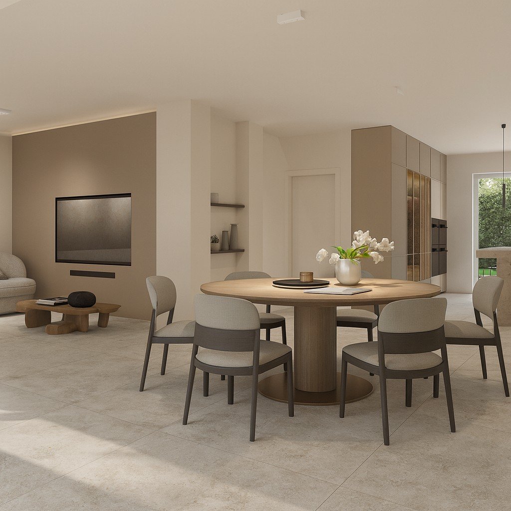 Das offen gestaltete Erdgeschoss mit Wohn-, Ess- und Kochbereich öffnet sich zu zwei sonnigen Terrassen. Ein Gäste-WC mit Dusche sowie ein separater Abstellraum für Vorräte und Haustechnik ergänzen diese Ebene sinnvoll.