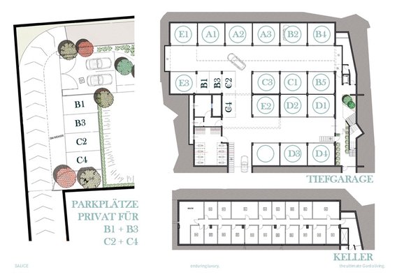 Zur Wohnung gehört eine große Doppelgarage innerhalb der Tiefgarage und ein ca. 20,45 m² großes Kellerabteil mit zusätzlichem Waschmaschinenanschluss. In jeder Wohnung ist ein Waschmaschinenanschluss vorhanden.