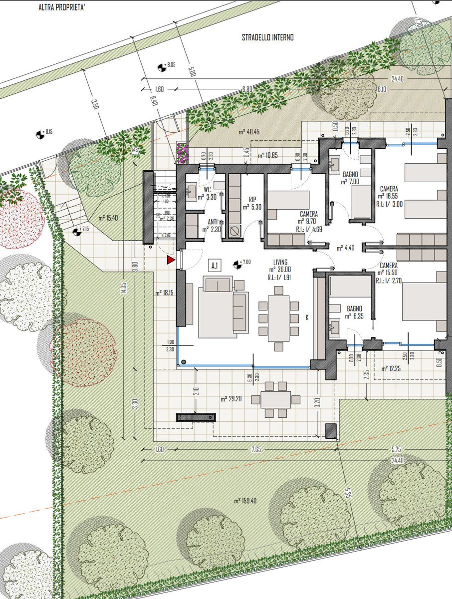 Auf dem herrlichen Grundstück werden vier zweigeschossige Gebäude (Casa A bis D) mit jeweils drei bis maximal fünf komfortablen Wohnungen errichtet. Ein weiteres Gebäude (Casa E), das eine Reihenend-Villa und zwei Wohnungen beinhalten soll, ist aktuell in Planung.