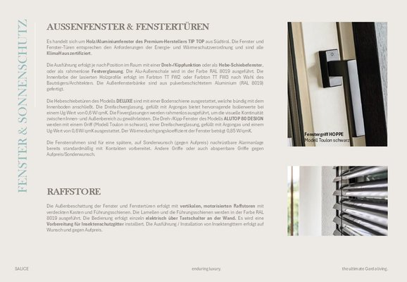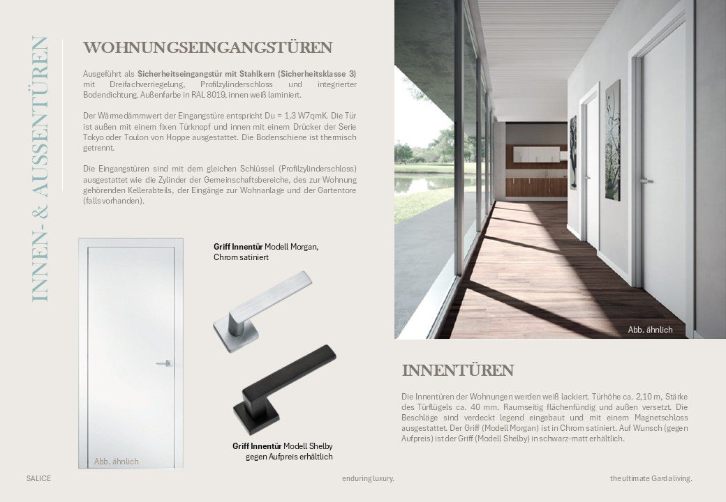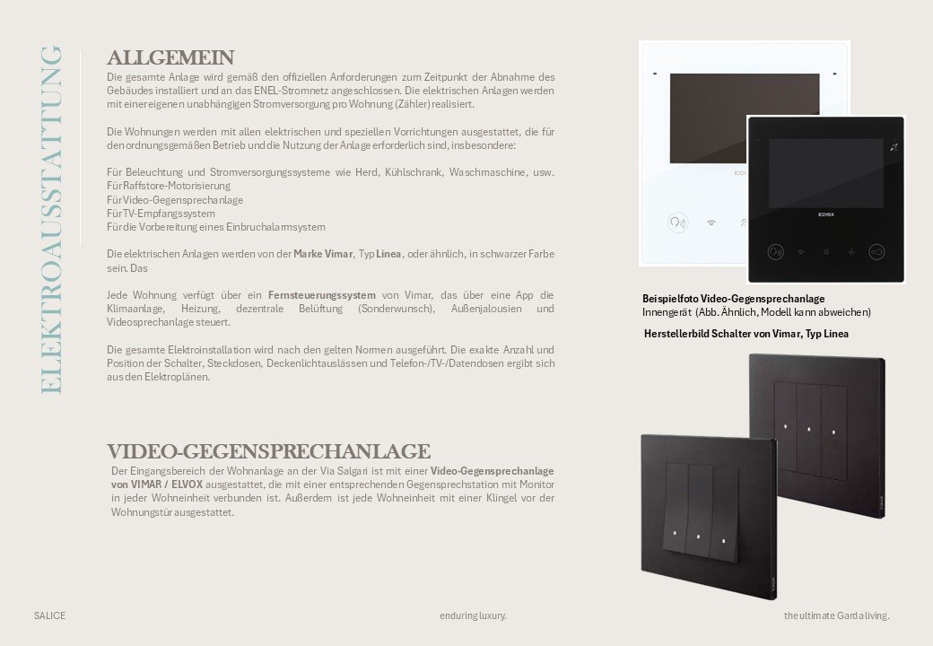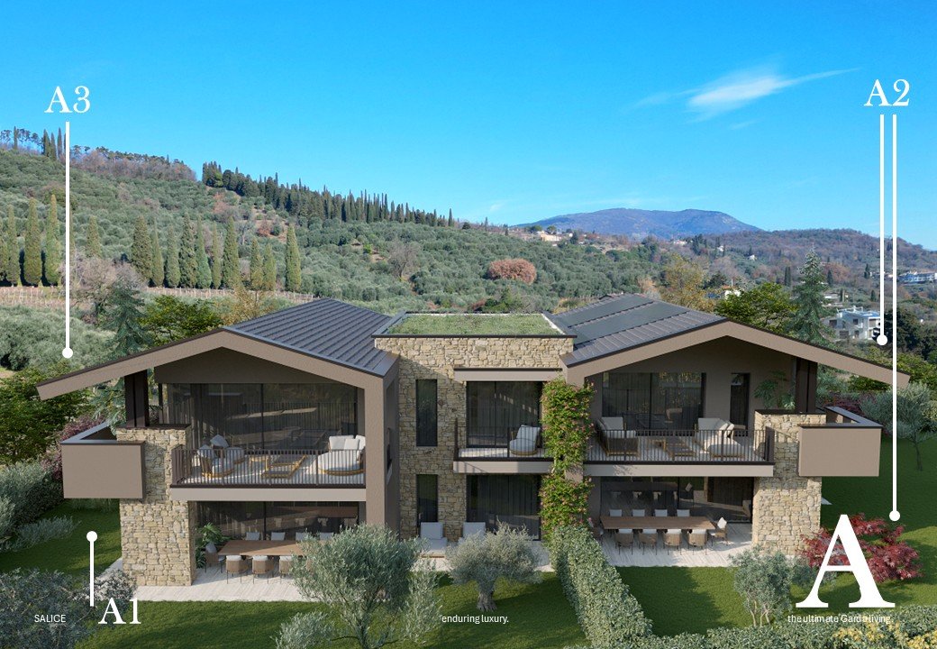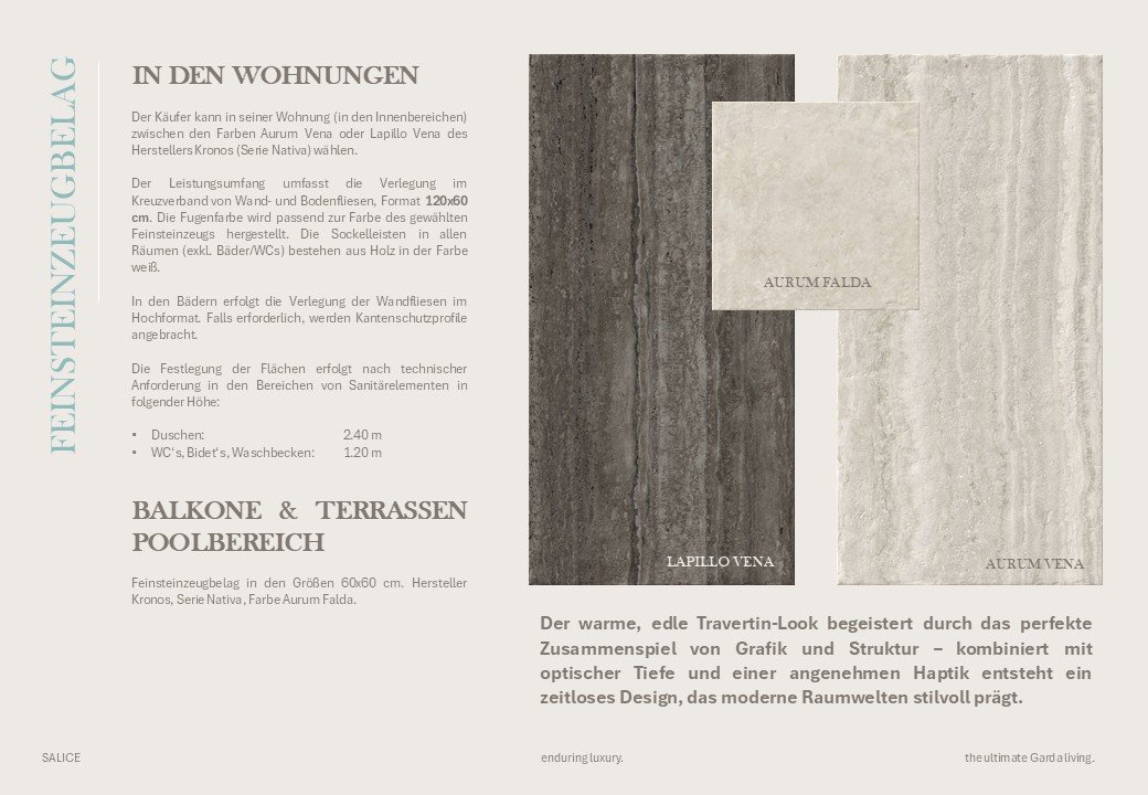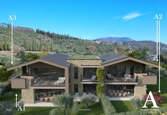 Die großzügigen Außenbereiche schaffen private Rückzugsorte und laden zum Entspannen ein: Erdgeschosswohnungen bieten liebevoll gestaltete Privatgärten, ideal für gesellige Stunden auf der Terrasse oder stille Momente im Grünen. Die Wohnungen in den oberen Etagen verfügen über großzügige, überdachte Veranden bzw. Balkone – der perfekte Ort, um bei einem Glas Wein den Blick über die herrliche Landschaft schweifen zu lassen. Einige Wohnungen bieten einen faszinierenden Blick auf den Gardasee, andere verzaubern mit einer idyllischen Aussicht auf die umliegenden Grünflächen und Berge.