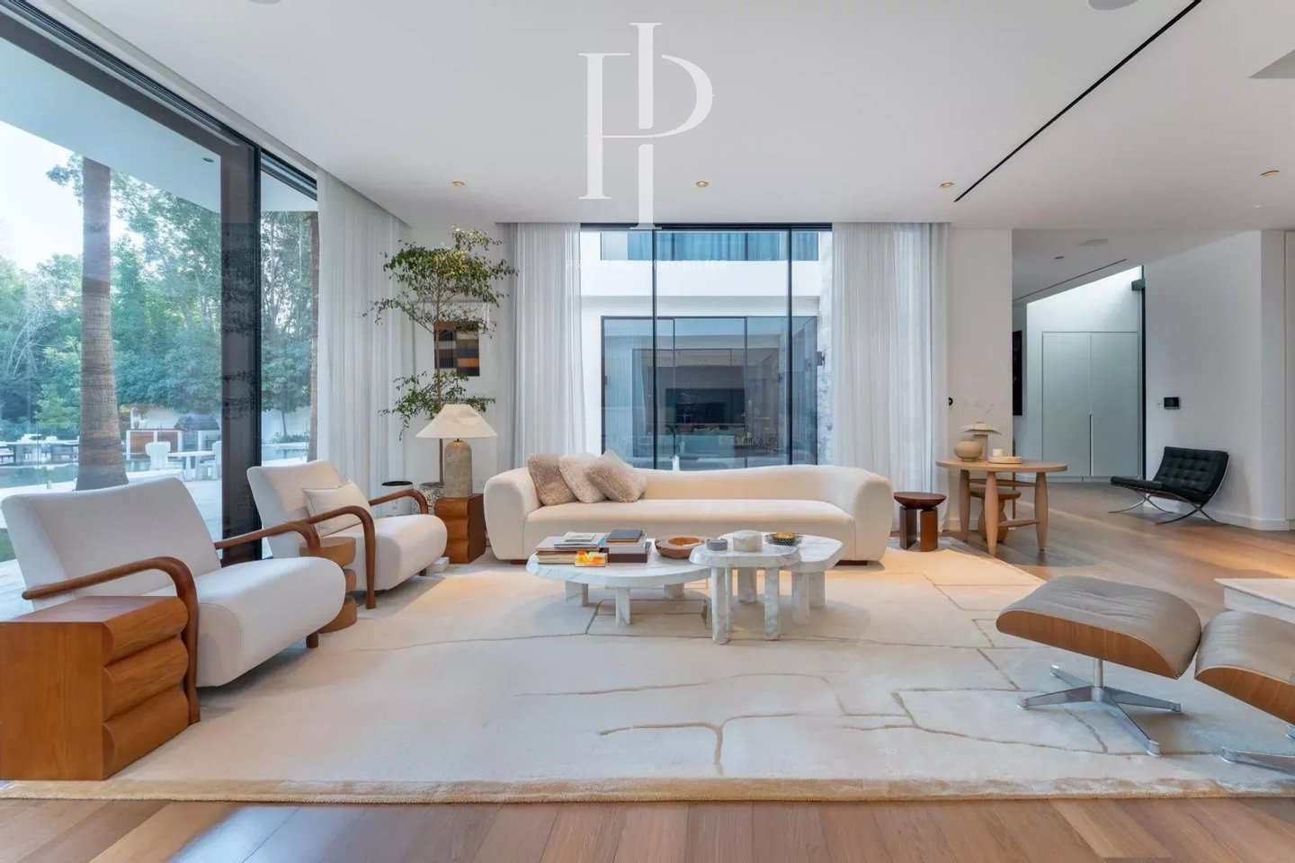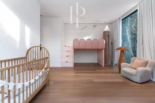 Vom ersten Moment an, in dem Sie eintreten, werden Sie von riesigen Räumen, sorgfältig eingerichteten Innenräumen und raumhohen Ausblicken auf üppiges Grün begrüßt. Jedes Zimmer ist mit eleganter und dennoch minimalistischer Ästhetik gestaltet, mit maßgeschneiderten Oberflächen und natürlichen Farben, die eine anspruchsvolle Palette an lebendiger Kunst bieten.