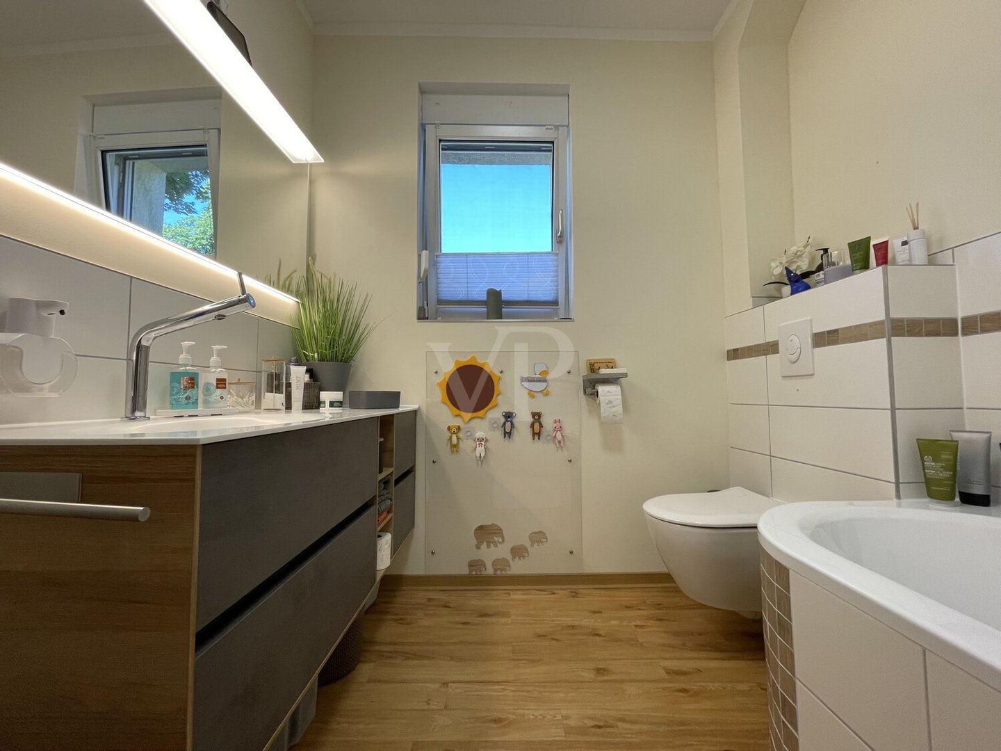 Das Haus verfügt insgesamt über drei gut geschnittene Zimmer und zwei geschmackvoll ausgestattete Bäder, die für hohen Wohnkomfort sorgen. Im Jahr 2002 wurde das Dachgeschoss stilvoll aufgestockt und das gesamte Gebäude umfassend und hochwertig kernsaniert. Damit wurde der historische Charme des Baujahrs bewahrt und zugleich mit zeitgemäßer Ausstattung kombiniert. Einige Fenster wurden 2023 durch besonders energieeffiziente, dreifach verglaste Modelle ersetzt.