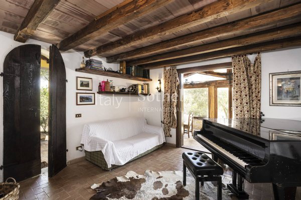 Zur Immobilie gehören außerdem eine 110 m² große Ruine auf angrenzendem Grundstück sowie die Möglichkeit, ein weiteres Hektar mit genehmigtem Projekt für eine 100 m² große Villa zu erwerben. Die strategische Lage ermöglicht es, die Strände des Argentario in 15 Minuten und die berühmten Thermen von Saturnia in 40 Minuten zu erreichen.