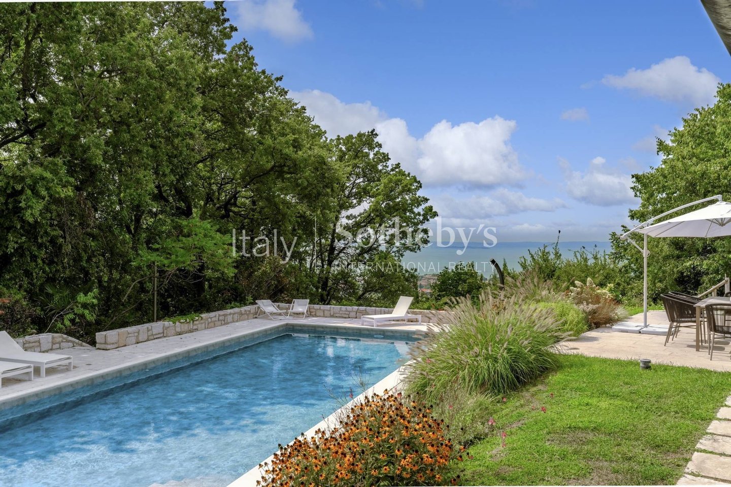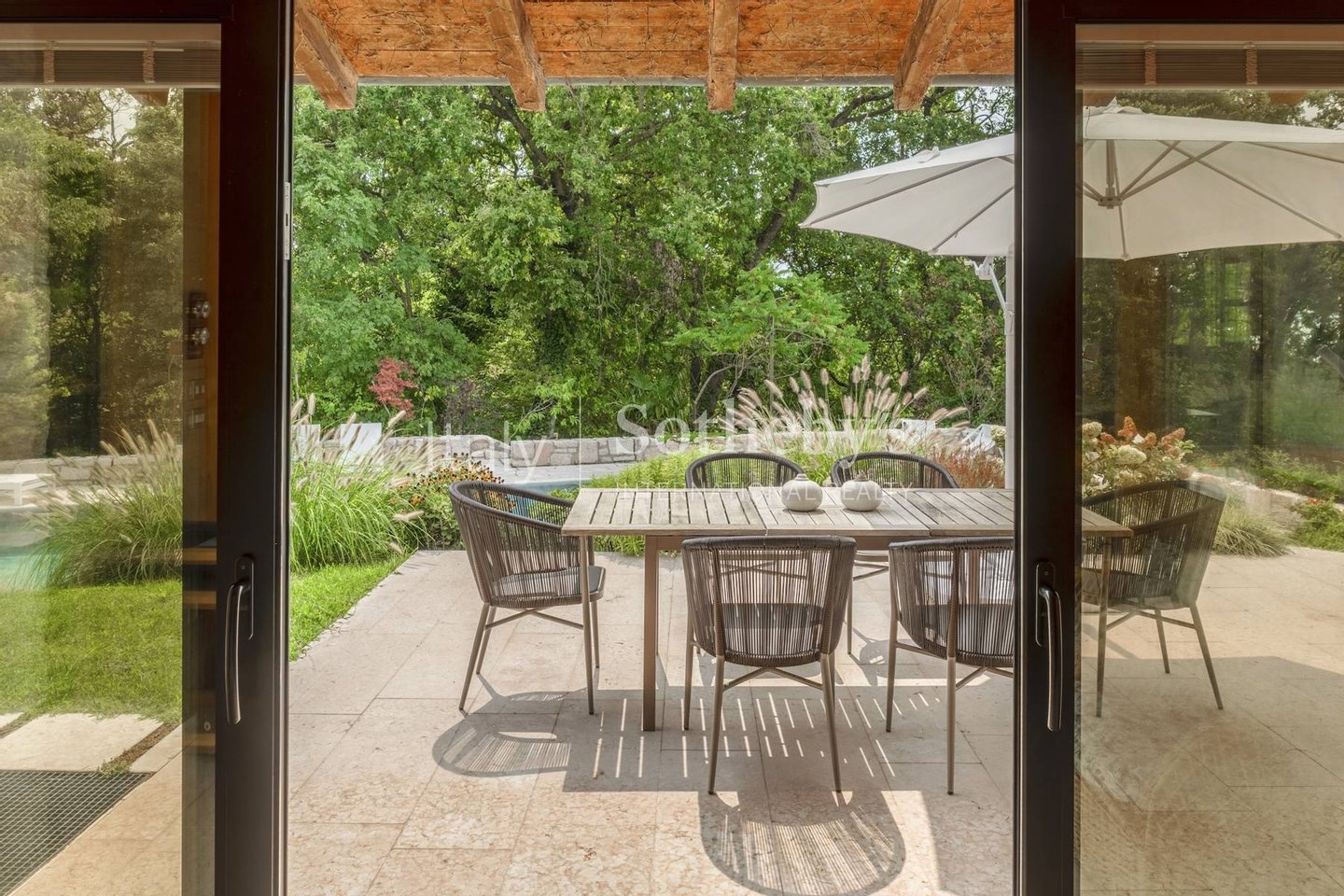 In a panoramic position above the picturesque town of Bardolino, stands this stone villa surrounded by an enchanting garden with a private woodland of about 4,000 sqm (43,055 sq ft / 0.99 acres): an oasis of peace and nature offering complete privacy a
