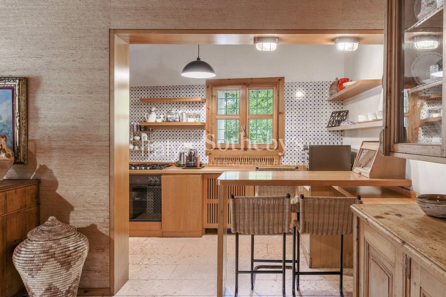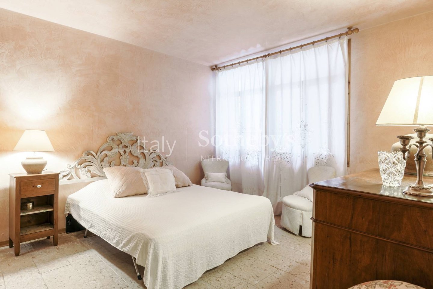 The residence preserves the timeless charm of Italian rustic style, with thick stone walls and spacious, welcoming interiors. The ground floor is the heart of the home: here you will find a large living area with a striking fireplace, a dining room and a separate kitchen, two double bedrooms, a small study adjacent to a veranda overlooking the garden, and two bathrooms. On the lower level, there is a second living area of 60 sqm ( 646 sq ft), three spacious bedrooms, and three bathrooms-an ideal space for guests or a large family, with the possibility of creating two independent units. The master bedroom features a large en-suite bathroom with bathtub and a newly installed sauna.