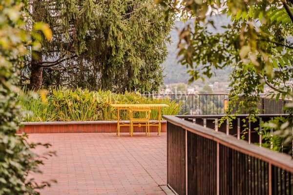 Der gepflegte Garten mit reicher Vegetation birgt stimmungsvolle Ecken und Panorama-Terrassen, die eindrucksvolle Ausblicke auf den See und die umliegenden Berge bieten.