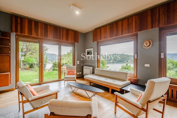 Nur wenige Schritte vom Zentrum von Laveno entfernt, direkt am Ufer des Lago Maggiore, bewahrt diese einzigartige Villa den authentischen Charme der Architektur der 1960er- und 1970er-Jahre. Sie besticht durch großzügige Räume und einen typ