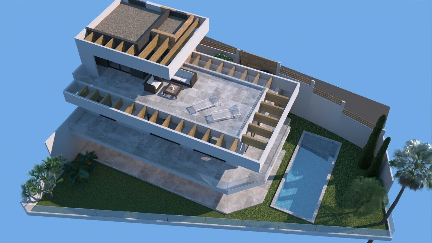 Das Projekt bietet zwei Villenmodelle auf einer oder zwei Ebenen mit 3 Schlafzimmern und 2 Bädern, die einen großen privaten Garten mit einem großen Terrassenbereich und einem 3x6 m großen privaten Swimmingpool bieten, der perfekt ist, um das Beste aus dem Leben im Freien in Spanien zu machen.