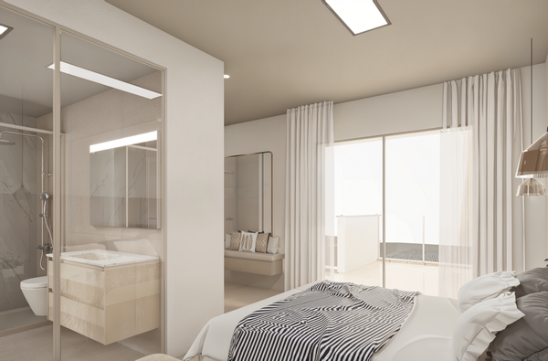 Die Villen verfügen über ein modernes Design und eine hochwertige Ausstattung, ideal für diejenigen, die ein geräumiges und gemütliches Zuhause suchen. Großzügige Grundstücke, um das Beste aus dem Leben im Freien in Spanien zu machen, mit einem privaten Swimmingpool. Bei diesem Modell handelt es sich um eine luxuriöse, freistehende Villa, die auf zwei Ebenen mit großen, lichtdurchfluteten Räumen entworfen wurde, um maximalen Komfort und Funktionalität zu bieten. Der Innenbereich besteht aus einem hellen, offenen Wohn- und Essbereich mit großen Fenstern, die sich zur Terrasse und zum Garten hin öffnen. Im Hauptwohnbereich befindet sich außerdem eine voll ausgestattete, moderne Küche im amerikanischen Stil mit einer Kochinsel in der Mitte sowie eine separate Waschküche. Im Erdgeschoss befinden sich zwei große Doppelschlafzimmer, eines davon mit eigenem Bad, sowie ein separates Gästebad. Die Innentreppe führt Sie in den ersten Stock, wo sich die Hauptsuite mit einem großen Schlafzimmer, einem eigenen Bad und einem Ankleidebereich befindet. Die erste Etage verfügt über eine große Sonnenterrasse von 69 m2, die über eine Außentreppe zum 36 m2 großen Solarium auf dem Dach führt. Das Anwesen verfügt über zusätzlichen Platz mit einem großen Kellergeschoss einschließlich einer Funktion Englisch Patio und Garage von 96m2.