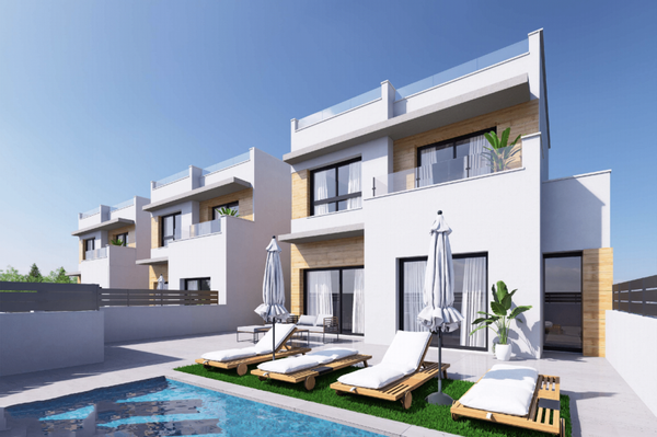 Ein brandneues Projekt von 6 zeitgenössischen Stil Villen mit 3 Schlafzimmern 3 Bädern und privatem Pool in Benijofar (Alicante), neben dem Benisol Gewerbegebiet und nur einen kurzen Spaziergang zum Stadtzentrum mit einer Reihe von Annehmlichkeiten