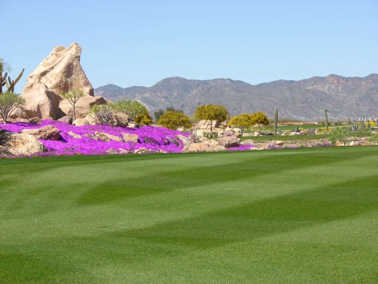 This stunning four-bedroom villa is nestled within the tranquil internal gardens of the prestigious Desert Gold community, offering breathtaking views across the championship Indiana golf course and the majestic mountains beyond. The villa is
