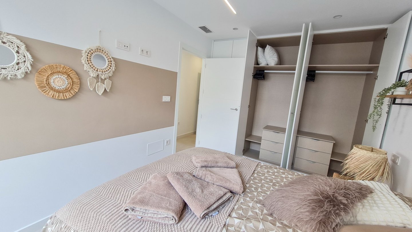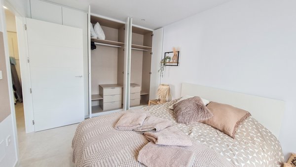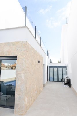Die Villa besteht aus einem geräumigen offenen Wohn- und Essbereich mit großen Fenstern, die viel natürliches Licht in das Haus lassen und Zugang zur Terrasse und zum Garten bieten. Im Hauptwohnbereich befindet sich eine voll ausgestattete moderne Küche im amerikanischen Stil mit Kochinsel. Im Erdgeschoss befinden sich außerdem ein großes Schlafzimmer mit Doppelbett und ein separates Gästebad. Die Innentreppe führt Sie in den ersten Stock, wo sich das Hauptschlafzimmer mit einem großen Schlafzimmer und einem eigenen Bad befindet, das Zugang zu einer privaten Sonnenterrasse mit Blick auf den Garten und den Pool hat. Im ersten Stock befindet sich auch ein weiteres Schlafzimmer mit Doppelbett und eigenem Bad. Die Villen verfügen über eine große Terrasse und einen Garten mit privatem Swimmingpool, um das Leben im Freien in Spanien optimal zu nutzen, und es besteht die Möglichkeit, eine Dachterrasse hinzuzufügen.