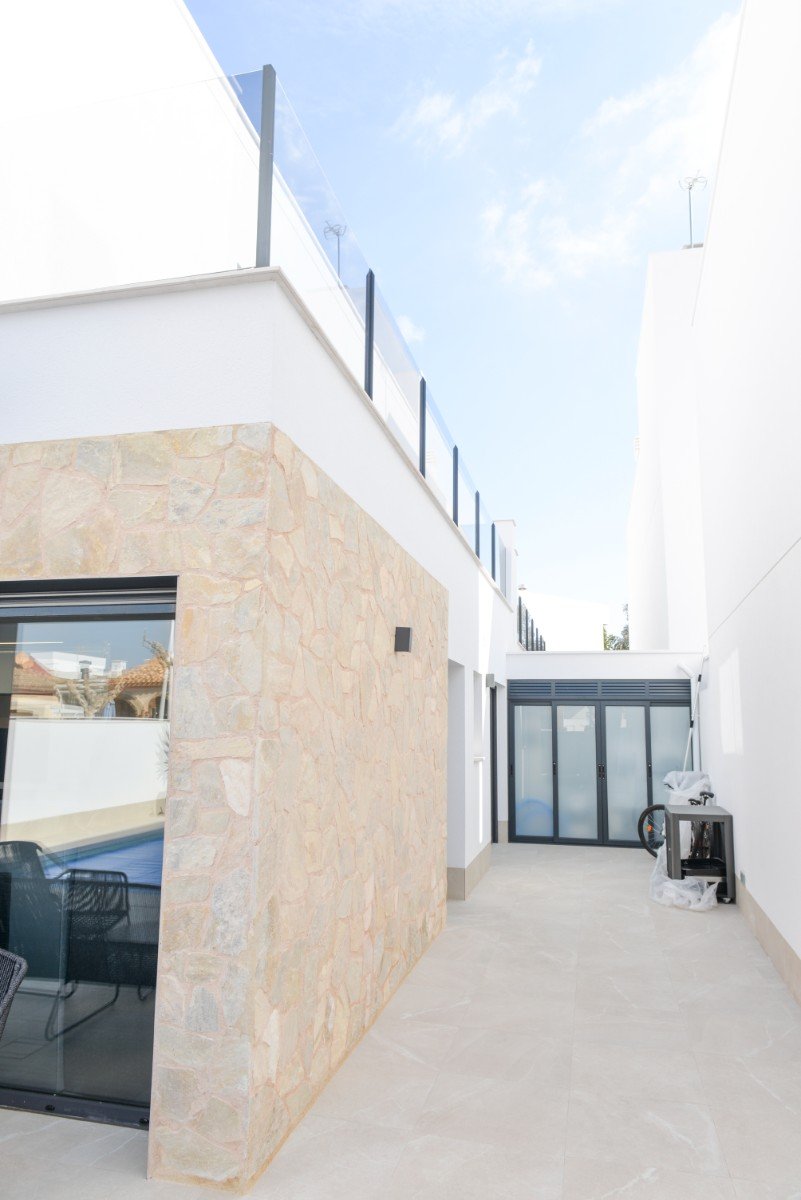 Ein brandneues Projekt von 12 freistehenden Villen im zeitgenössischen Stil mit 3 Schlafzimmern, 3 Badezimmern und privatem Swimmingpool in San Pedro del Pinatar (Murcia), in der Nähe aller Annehmlichkeiten, der schönen Sandstrände und des