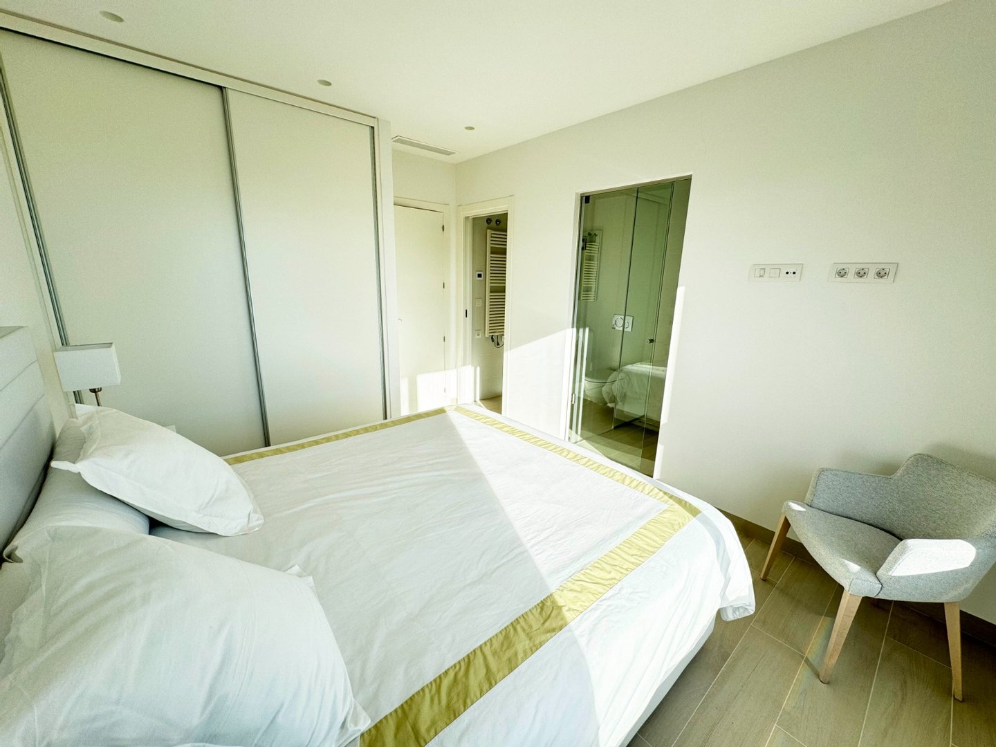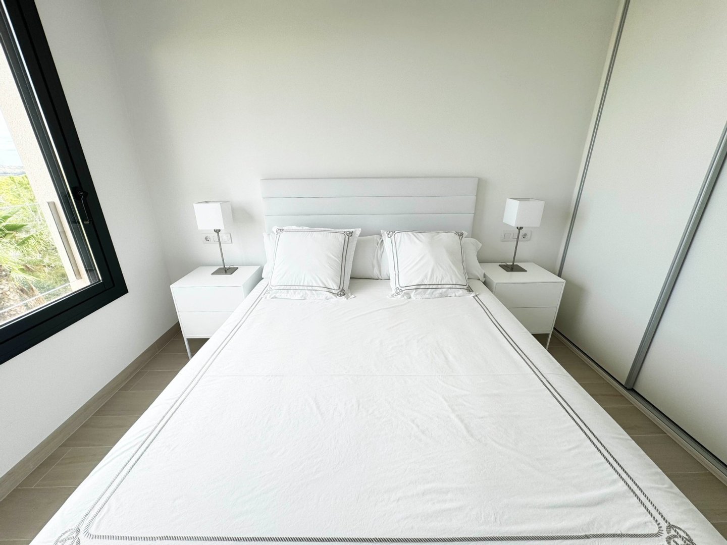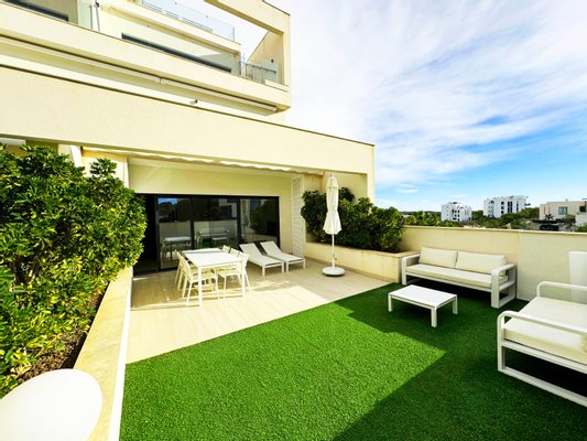 Schöne Erdgeschoss-Wohnung mit einer geräumigen Terrasse, angelegten Garten und einfachen Zugang zu einem großen Gemeinschaftspool. Die Wohnung verfügt über 3 Schlafzimmer mit Einbauschränken und 2 Bädern mit elektrischer Fußbodenheizung. Eine voll ausgestattete Küche mit allen Elektrogeräten, Klimaanlage (warm/kalt) in der gesamten Wohnung und ein Smart Home System für Licht und Rollläden. Im Preis inbegriffen ist auch ein privater Tiefgaragenplatz,ein Abstellraum von ca 6m2 und ein luxuriöses Möbelpaket, das aus geräumigen und gut gebauten Doppelbetten sowie einem Ledersofa im Wohnzimmer und anderen hochwertigen Gegenständen besteht. Mit einer sehr ruhigen Lage und mit einer perfekten Südausrichtung ist dies ein großartiges Objekt und wartet nur auf Ihren Besuch.