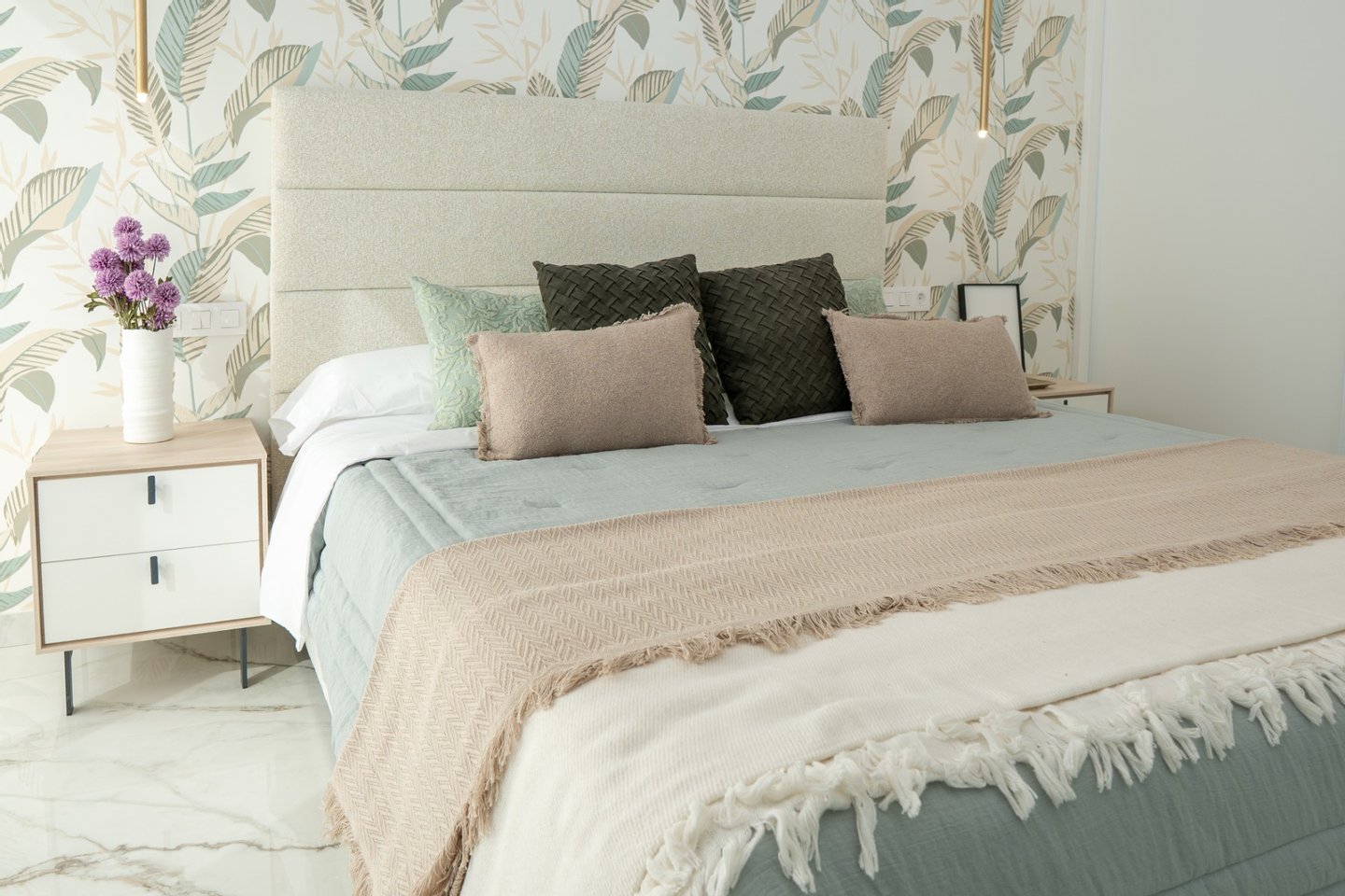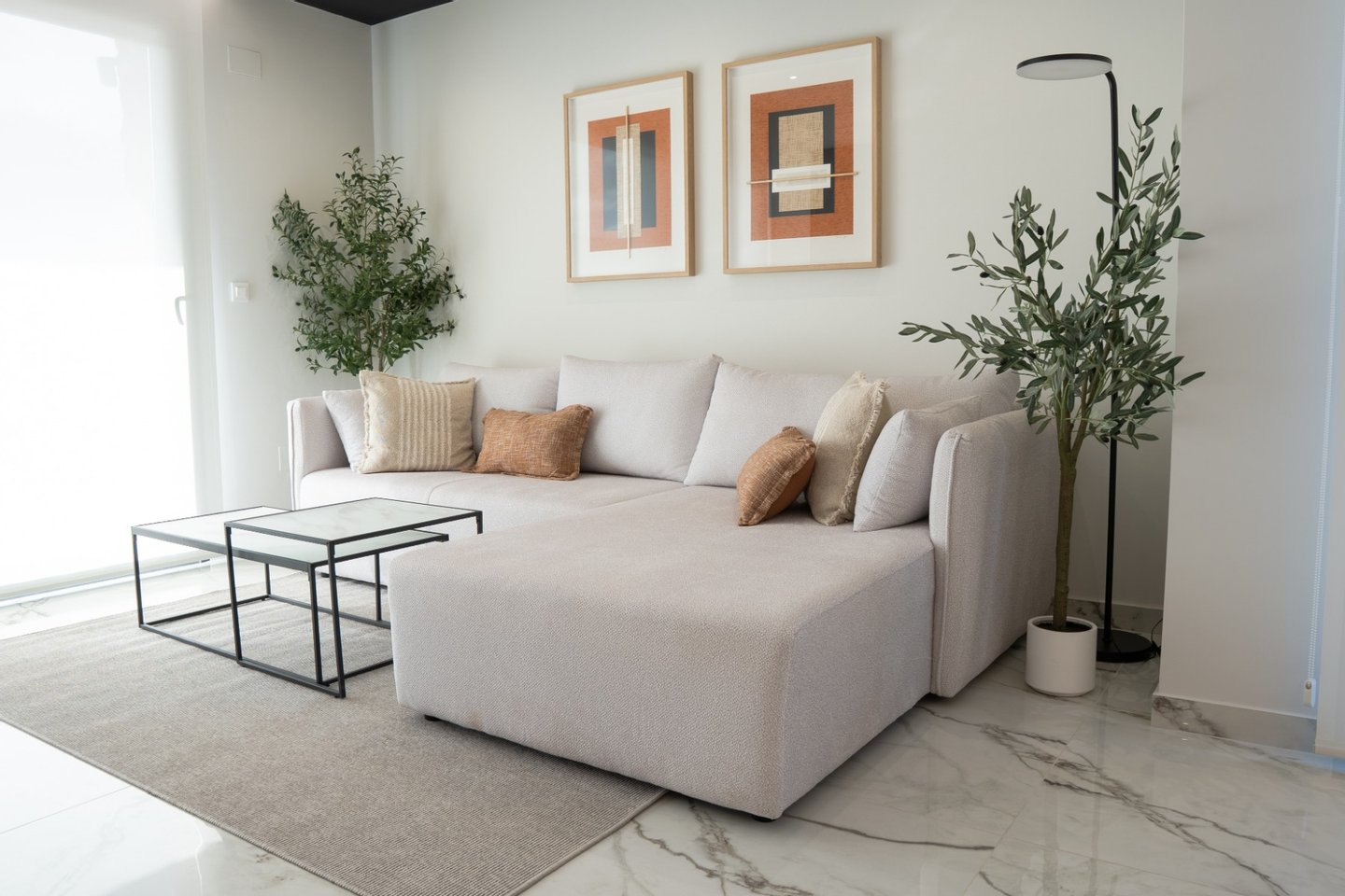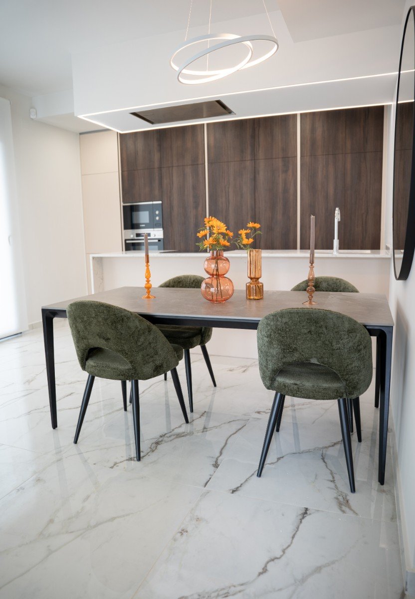 Die Eigenschaften werden mit einem kompletten Möbelpaket verkauft und kommen auch einschließlich Kanal-Klimaanlage, Fußbodenheizung in den Badezimmern, Küche Elektrogeräte (Backofen, Herd, Dunstabzugshaube, Mikrowelle, Kühl-Gefrierkombination, Geschirrspüler und Waschmaschine), Einbauschränke in allen Schlafzimmern, Innen- und Außenbeleuchtung, Smart TV, Haushaltswaren, elektrische Jalousien mit Fernbedienung, Garten mit Kunstrasen einschließlich einer Palme, privaten Swimmingpool von 3 x 6m, und einen privaten Parkplatz auf dem Grundstück abgeschlossen.
