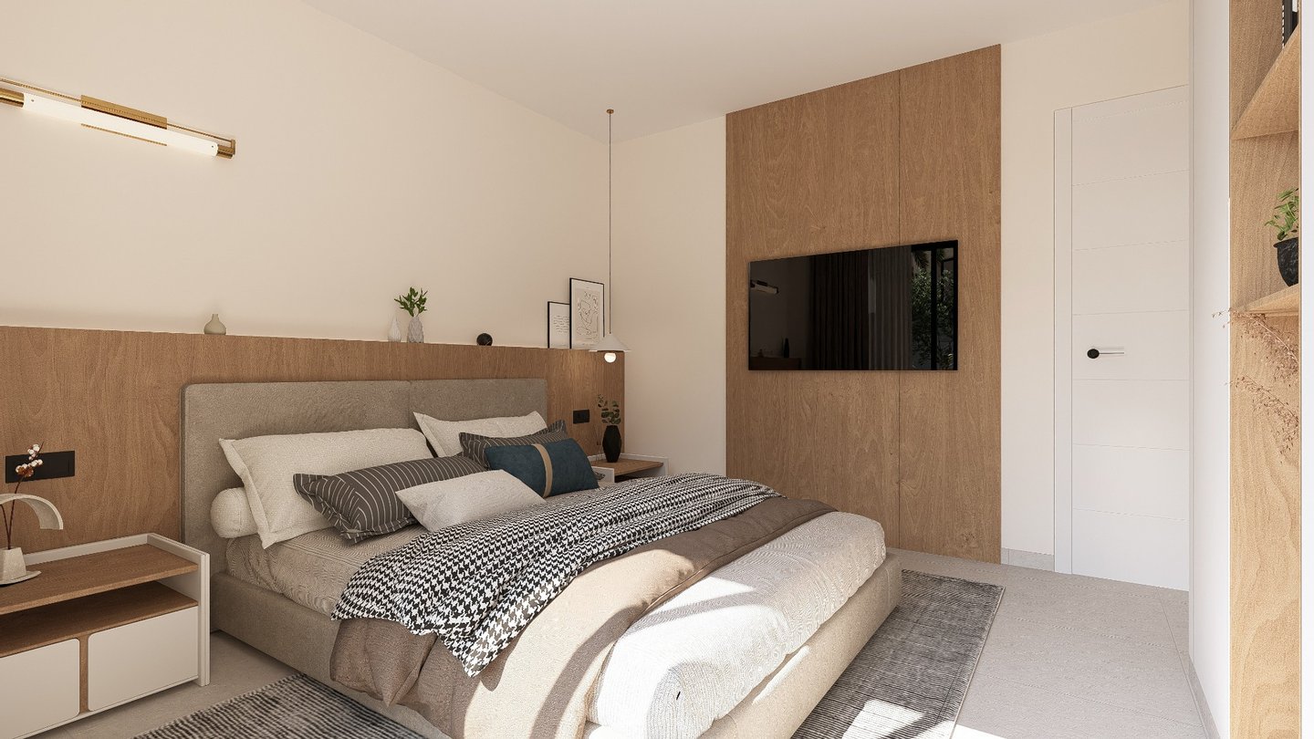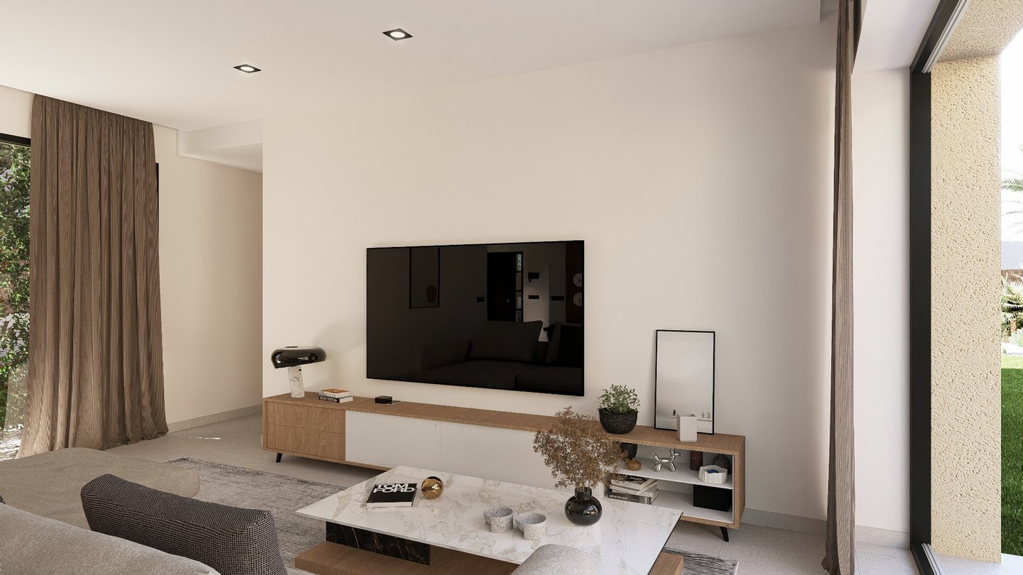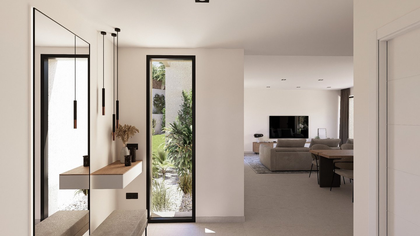Die Eigenschaften kommen einschließlich Kanal-Klimaanlage, Induktionskochfeld und Dunstabzugshaube in der Küche, Vorinstallation für elektrische Handtuchhalter in den Badezimmern, Einbauschränke in allen Schlafzimmern, Innen- und Außen-LED-Beleuchtung, Video-Gegensprechanlage, angelegten Garten, einen privaten Swimmingpool von 3 x 7 Meter, Außendusche und einen privaten Parkplatz auf dem Grundstück mit motorisierten Eingangstor.