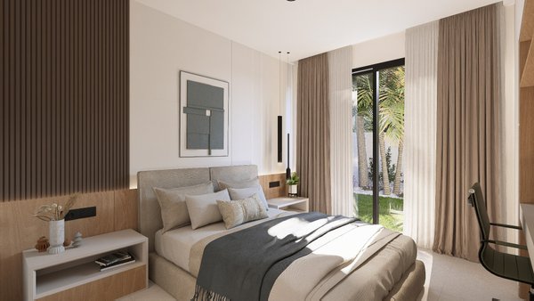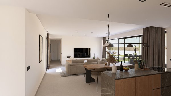 Die Villen wurden in einem zeitgenössischen Stil entworfen, mit großen Fenstern im ganzen Haus, die viel natürliches Licht durchlassen und so eine helle und luftige Umgebung schaffen, mit großen Außenbereichen mit Terrassen und Garten, um das Leben im Freien im wunderbaren spanischen Klima zu genießen.