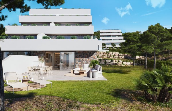 Modernes Apartment „Kumquat“ mit 3 Schlafzimmern, geräumiger Terrasse, in der Nähe des Golfplatzes in Las Colinas Golf. Hochwertige Ausstattung, Garage und Lagerraum bei jeder Einheit. Umgeben von Naturschutzgebiet und mediterranem Wald mit