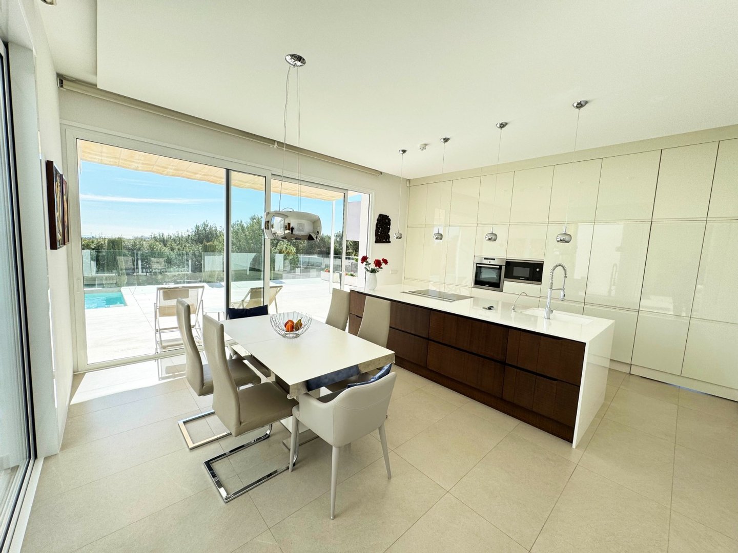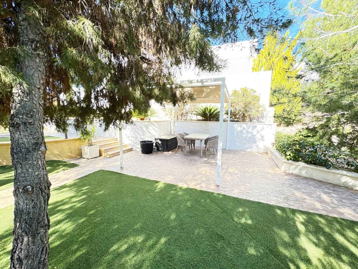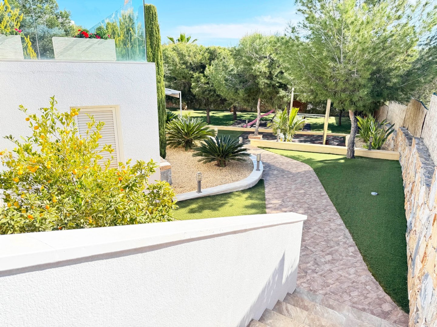 Wunderschöne, moderne Villa im modernen Stil in Olivo -Gemeinde mit privatem Pool und geräumigem Garten. Diese Villa besteht aus 4 Schlafzimmern, 3 Badezimmern + Gast -Toilette, einem privaten Pool mit automatischer Abdeckung und Heizpumpe, Garage und geräumigen Terrassen mit offenem Blick zum Meer. Die Handlung opfert etwa 1488m2 mit einem 269 m2 Build und einer Hauptterrasse von 110 m2 Dachterrasse + 110 m2 Dachterrasse. Sehr private und ruhige Lage in der Olivo -Community. Die Villa ist auf zwei Ebenen mit offener Aussicht von der Hauptterrasse sowie dem Solarium gebaut. Diese Villa wird teilweise eingerichtet und umfasst viele Extras wie Smart Home System, Electric Jungs, Air Con mit Luftzone, Bodenheizung auf beiden Ebenen des Hauses sowie die Abdeck- und Heizpumpe für den privaten Pool. Landscapeed Garden auf verschiedenen Ebenen mit Spielplatz für Kinder und private Sitzbereiche mit Pergola.