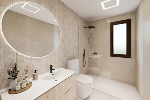 Jede Wohnung wurde so konzipiert, dass sie möglichst viel natürliches Licht erhält und so Räume schafft, in denen Komfort und Eleganz zusammenkommen. Die Wohnungen verfügen über drei separate Zugänge und Treppenhäuser, die für mehr Privatsphäre und Komfort sorgen. Die Innenausstattung besteht aus einem hellen und geräumigen, offenen Wohn- und Essbereich mit großen Fenstern, die sich zur privaten Terrasse hin öffnen. Im Hauptwohnbereich befindet sich eine Küche im amerikanischen Stil mit funktionellem Design, modernen Möbeln und intelligenten Räumen, und neben der Küche gibt es einen separaten Waschraum. Zu jeder Wohnung gehört auch eine Primärsuite, die für mehr Komfort und Abgeschiedenheit sorgt. Im Gegensatz zu den offenen, gläsernen Hotelbädern bietet die Primary Suite eine vollständige Trennung zwischen dem Schlafbereich und dem Badezimmer, so dass eine ruhige, ungestörte Nachtruhe ohne Licht-, Lärm- oder Geruchsbelästigung gewährleistet ist. Dieses Schlafzimmer wurde mit Blick auf das Wohlbefinden geschaffen und bietet eine ruhige und funktionelle Umgebung für diejenigen, die echten Komfort zu Hause schätzen. Darüber hinaus gibt es zwei weitere, gut geschnittene Doppelzimmer und ein separates Gästebad. Die Wohnungen im obersten Stockwerk verfügen über eine Außentreppe auf der Sonnenterrasse, die auf die weitläufige Dachterrasse mit einer Fläche von über 45 m2 führt, wo man den ganzen Tag die Sonne genießen kann.