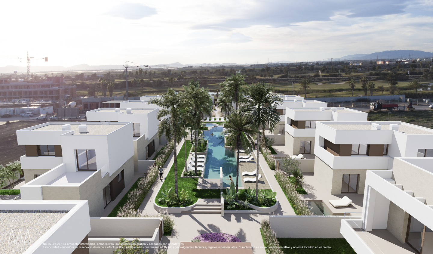 Ein brandneues Projekt, das freistehende Villen im zeitgenössischen Stil mit 3 Schlafzimmern und 2,5 Bädern in La Serena Golf - Los Alcazares (Murcia) anbietet, einer außergewöhnlichen Gegend an der Costa Calida, nur wenige Meter vom