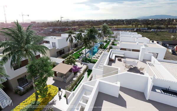 Ein brandneues Projekt, das freistehende Villen im zeitgenössischen Stil mit 3 Schlafzimmern und 2,5 Bädern in La Serena Golf - Los Alcazares (Murcia) anbietet, einer außergewöhnlichen Gegend an der Costa Calida, nur wenige Meter vom
