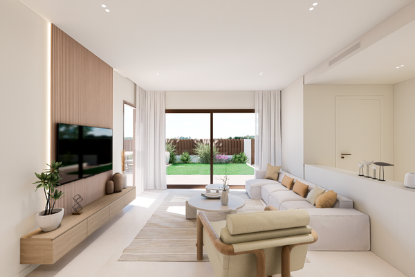 Zusätzlich gibt es integrierte nachhaltige Merkmale wie Sonnenkollektoren und aerothermische Systeme, die den heutigen Marktanforderungen entsprechen. Die Immobilien verfügen über eine vorinstallierte Klimaanlage, Cerankochfeld und Dunstabzugshaube in der Küche, Einbauschränke in allen Schlafzimmern mit Schubladen und optimierter Verteilung in jedem Schlafzimmer, LED-Innenbeleuchtung, private Gärten mit Kunstrasen je nach Art der Immobilie, Tiefgaragenstellplatz mit Vorinstallation für Elektrofahrzeuge und Abstellraum.