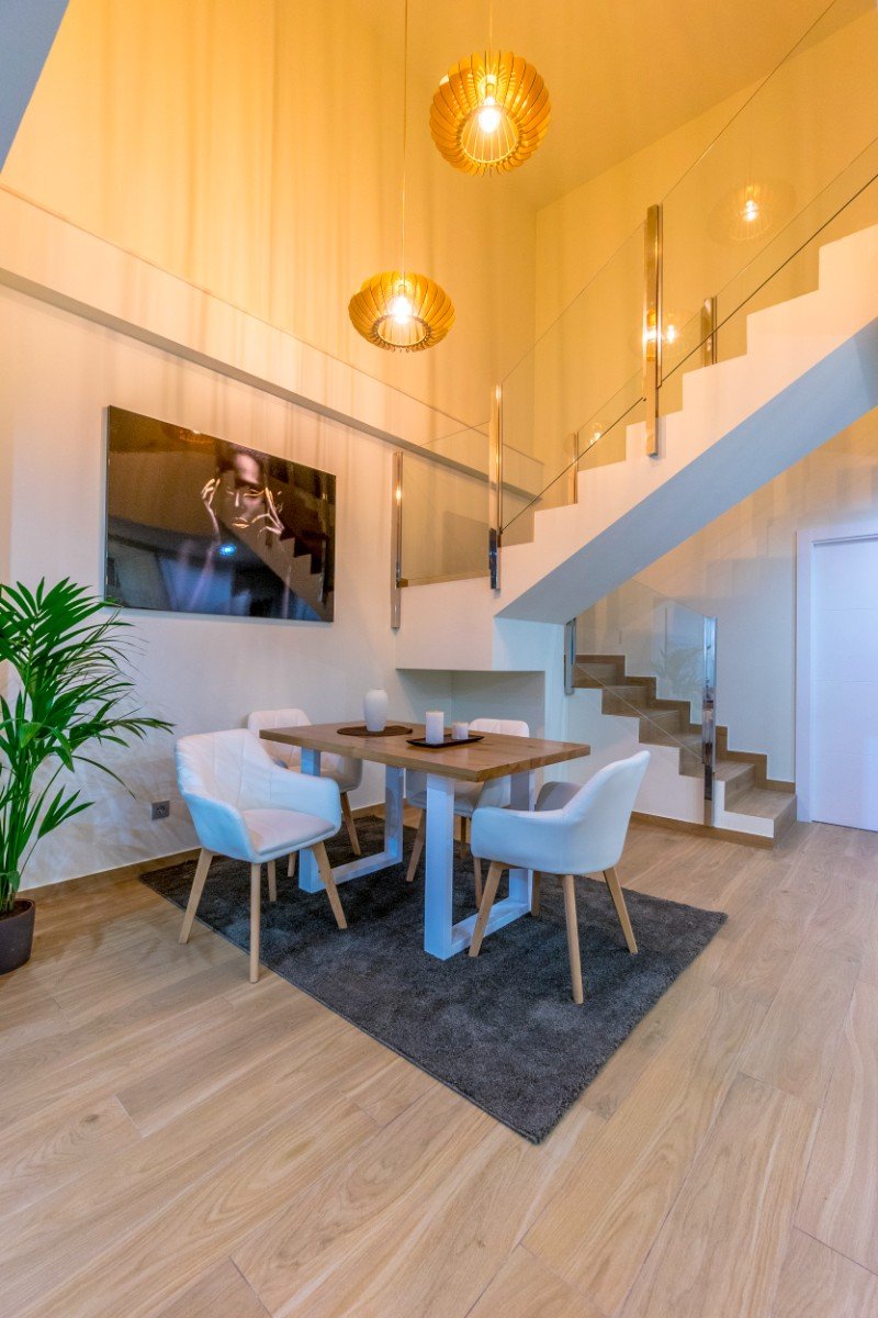 Das Projekt bietet die Wahl zwischen Villen auf einer oder zwei Ebenen. Dieses besondere Villenmodell erstreckt sich über zwei Ebenen und die Innenaufteilung besteht aus einem geräumigen, offenen Wohn- und Essbereich mit hohen Decken und großen Fenstern im gesamten Raum, die für viel natürliches Licht sorgen und sich zur Terrasse hin öffnen. Im Hauptwohnbereich befindet sich eine voll ausgestattete moderne Küche im amerikanischen Stil und eine Gästetoilette. Im Erdgeschoss befindet sich auch ein großes Schlafzimmer mit viel Platz, einem eigenen Bad und einem Ankleidebereich. Die Innentreppe führt Sie in den ersten Stock, wo sich die beeindruckende Hauptsuite mit einem besonders großen Schlafzimmer, einem eigenen Bad und einem begehbaren Kleiderschrank befindet. Im ersten Stock befindet sich auch ein weiteres großes Schlafzimmer mit Doppelbett und eigenem Bad. Der Flur im ersten Stock hat einen Zugang zu einer Sonnenterrasse von knapp über 13 m2. Der Außenbereich im Erdgeschoss macht das Leben im Freien mit einem weitläufigen privaten Garten und einer Terrasse mit einem privaten Swimmingpool von 6 x 3 m perfekt, um in der Sonne zu entspannen und im Freien zu essen. Es gibt das optionale Extra des Hinzufügens einer Dachterrasse von 19m2.
