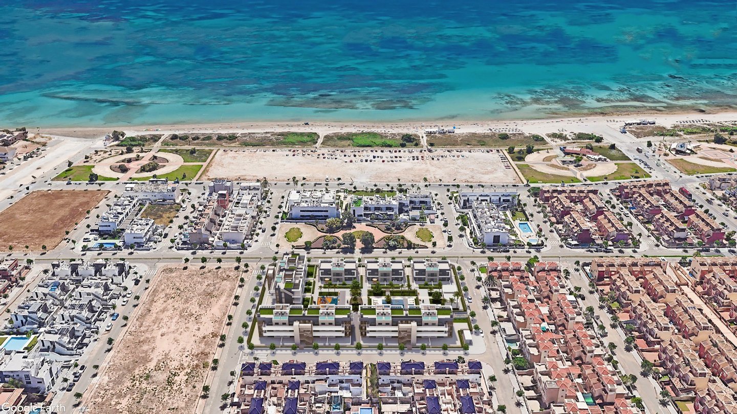 Eine brandneue Wohnanlage mit insgesamt 48 touristischen Apartments und Bungalows mit 2 oder 3 Schlafzimmern und 2 Bädern in Torre de la Horadada (Alicante), nur 5 Gehminuten von den Sandstränden Playa de las Higuericas und Playa de las Villas