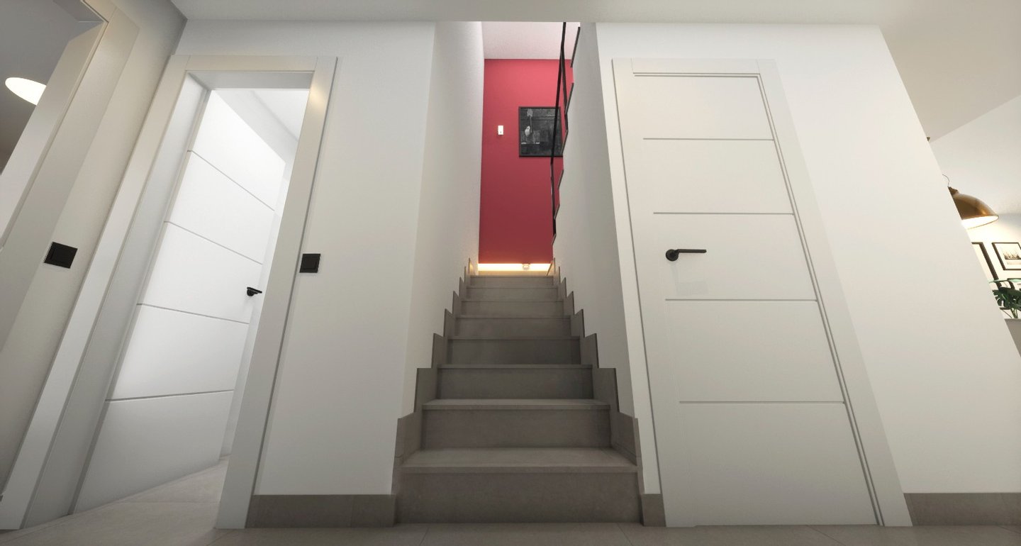 Die Villen wurden in einem zeitgenössischen Stil und mit einem offenen Konzept entworfen. Dieses besondere Villenmodell erstreckt sich über zwei Ebenen und die Innenaufteilung besteht aus einem hellen und geräumigen Wohn- und Essbereich mit großen Fenstern, die sich zur Terrasse und zum Garten hin öffnen. Im Hauptwohnbereich befindet sich eine voll ausgestattete Küche im amerikanischen Stil mit weißen Schränken und einer schwarzen Granitarbeitsplatte. Im Erdgeschoss befinden sich außerdem ein geräumiges Schlafzimmer mit Doppelbett und ein separates Gästebad. Die Innentreppe führt Sie in den ersten Stock mit dem Hauptschlafzimmer, das Zugang zu einer privaten Sonnenterrasse mit Blick auf den Garten hat. Es gibt auch ein weiteres Schlafzimmer mit Doppelbett und ein zweites separates Gästebad. Eine Außentreppe führt Sie auf die umfangreiche Dachterrasse von 46m2 mit einer Sommerküche, perfekt für ein Essen im Freien in der Sonne zu genießen.