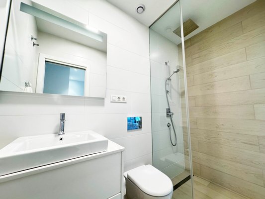 Die Wohnung befindet sich in einer bewachten Gemeinschaft und verfügt über eine private Tiefgarage und einen nützlichen, großen Abstellraum, der sich perfekt für die Aufbewahrung von Fahrrädern eignet. Das Gebäude kann über die private Tiefgarage oder das Eingangstor betreten werden, und Sie können jede Etage entweder mit dem Aufzug oder über das Treppenhaus erreichen. Die Immobilie bietet eine große, nach Süden ausgerichtete Terrasse und einen privaten Garten, um den ganzen Tag über die Sonne zu genießen und sich zu entspannen. Die Terrasse verfügt auch über eine elektrische Markise, die perfekt ist, um einen schattigen Bereich zu schaffen, wenn Sie es brauchen, und der private Garten hat einen direkten Eingangstor in die kommunalen Bereiche.