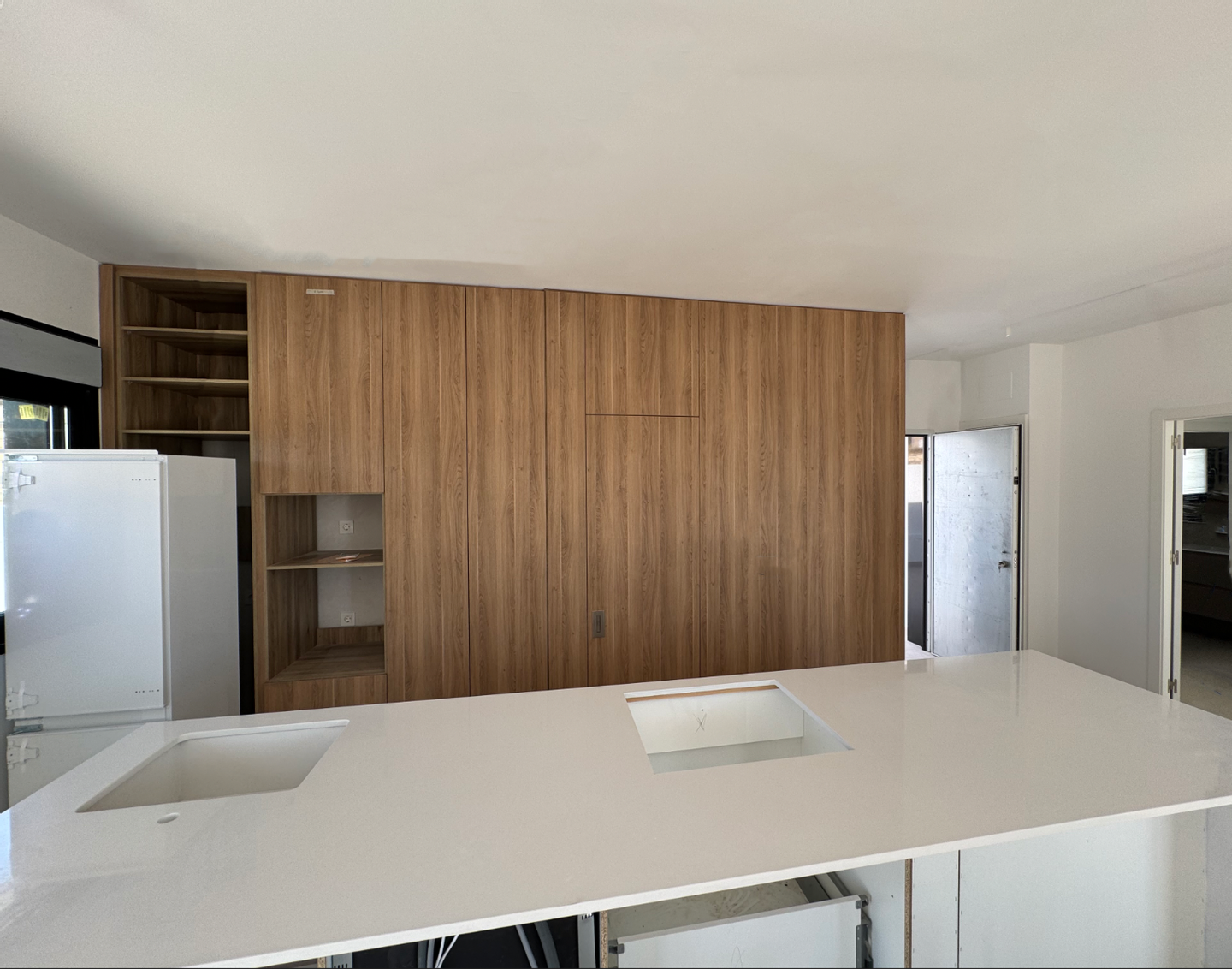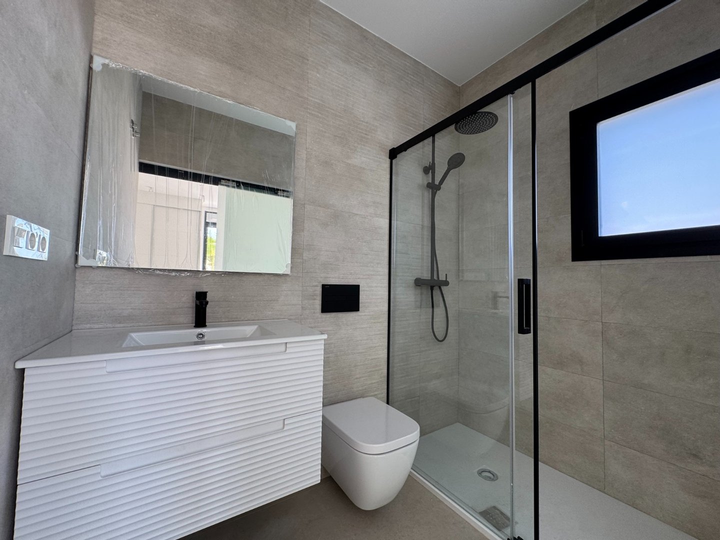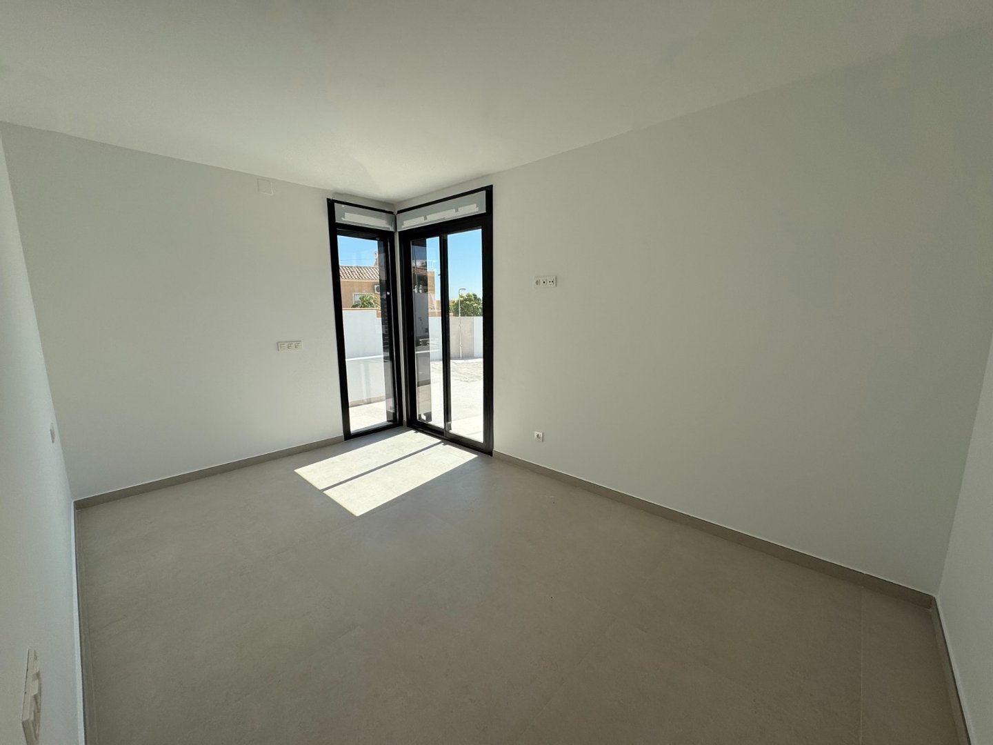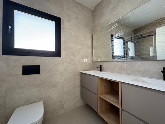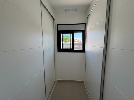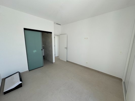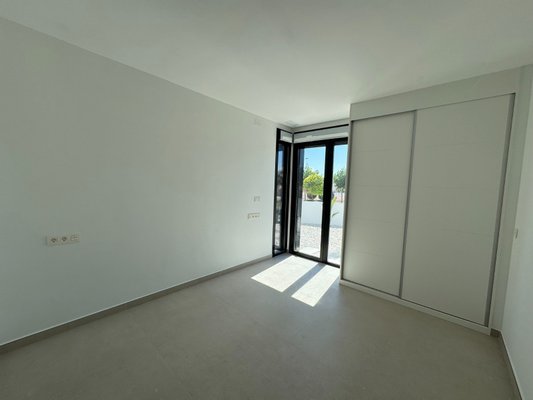 Die Villa befindet sich auf einer Ebene und die Innenaufteilung besteht aus einem hellen und geräumigen offenen Wohn- und Essbereich mit großen Fenstern, die viel natürliches Licht in die Wohnung lassen und Zugang zur Terrasse und zum Garten bieten. Im Hauptwohnbereich befindet sich eine voll ausgestattete, moderne Küche im amerikanischen Stil mit einer Mittelinsel, niedrigen und hohen Schränken, die viel Stauraum bieten, und einer Arbeitsplatte aus Silestone. Ein tolles Designmerkmal ist die verborgene Tür in der Küche, die Zugang zu einer nützlichen Waschküche bietet. In der Nähe der Eingangstür befindet sich auch eine Gästetoilette. Das große Hauptschlafzimmer verfügt über ein eigenes Bad und einen Ankleidebereich. Es gibt zwei weitere große Doppelschlafzimmer, beide mit eigenem Bad en-suite.