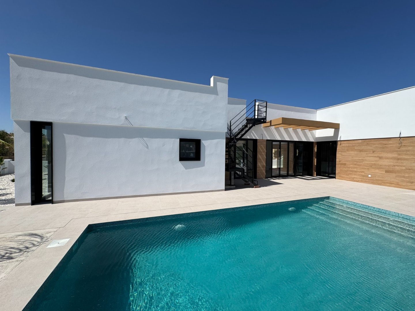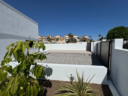 Die Villa verfügt über ein elegantes, modernes Design und ein geräumiges 582 m2 großes Grundstück mit viel Platz im Freien, um das Beste aus dem Leben im Freien in Spanien zu machen... ein pflegeleichter privater Garten, ein großer Terrassenbereich zum Entspannen und Erholen am privaten Swimmingpool sowie Bereiche zum Unterhalten mit Essen im Freien. Der Außenbereich wird durch die große Dachterrasse, die einen herrlichen Ausblick bietet, noch erweitert.